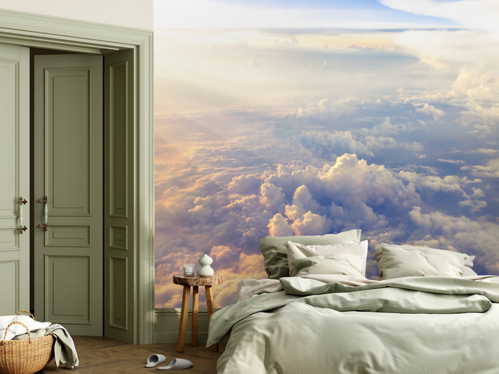 Fototapete Sonnenbeschienene wolken über dem horizont
