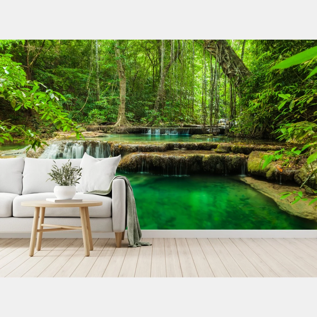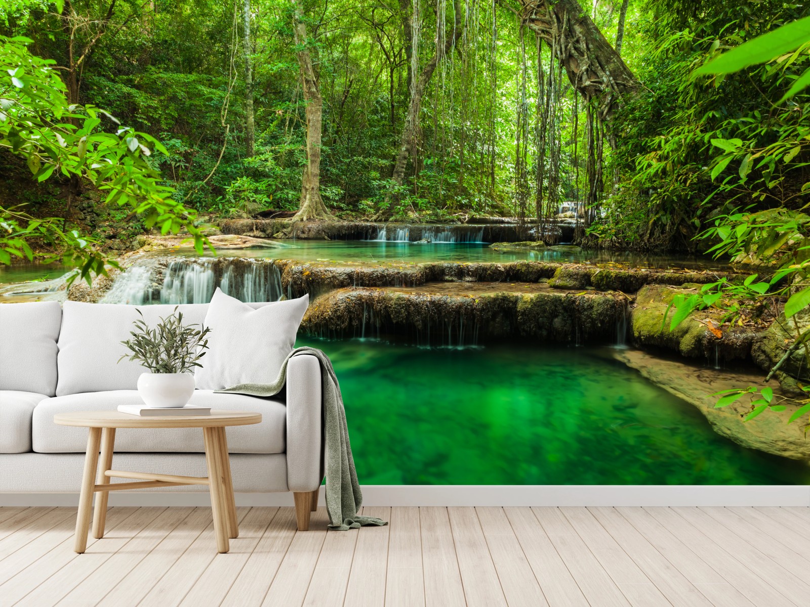 Fototapete Ruhige türkisbecken am wasserfall Erawan