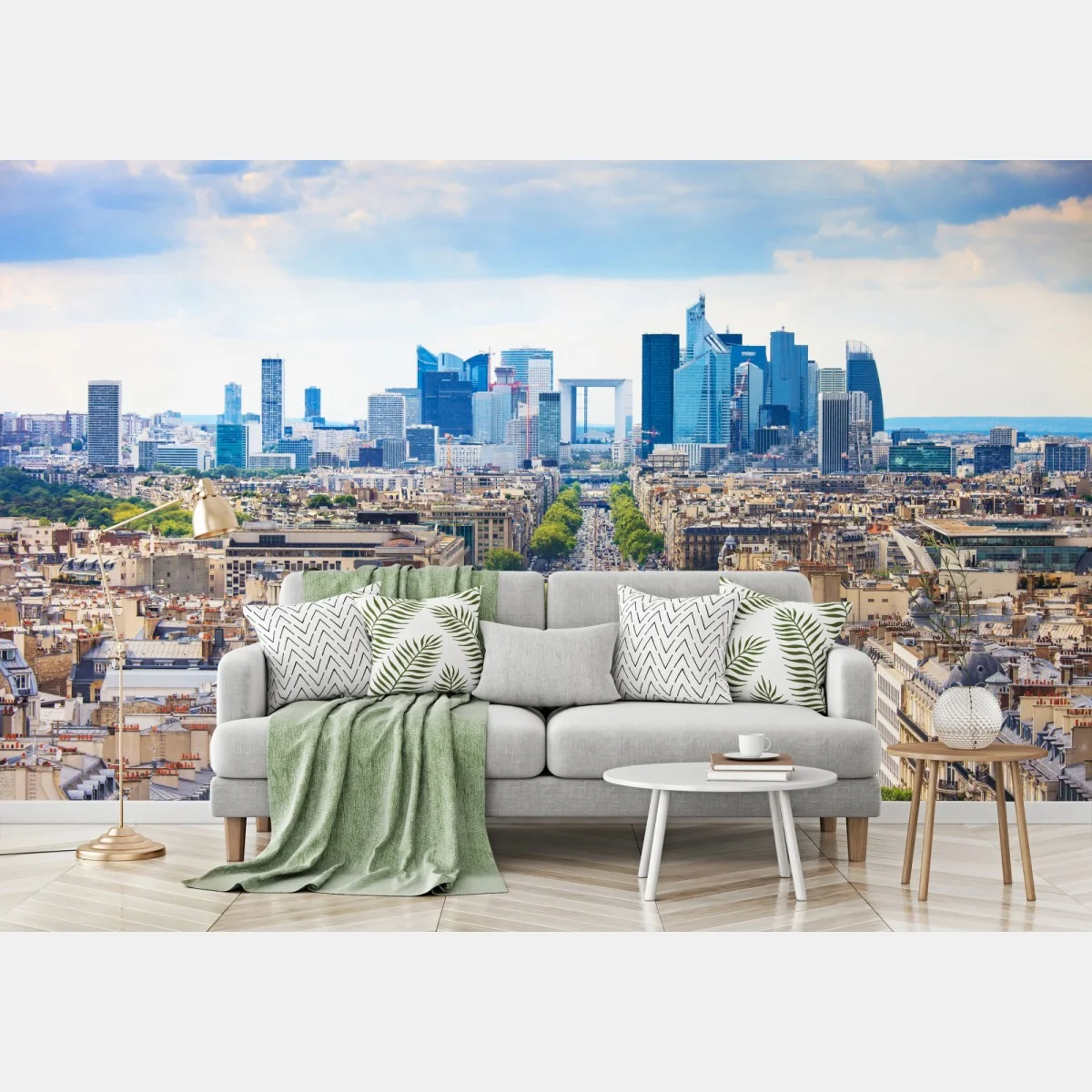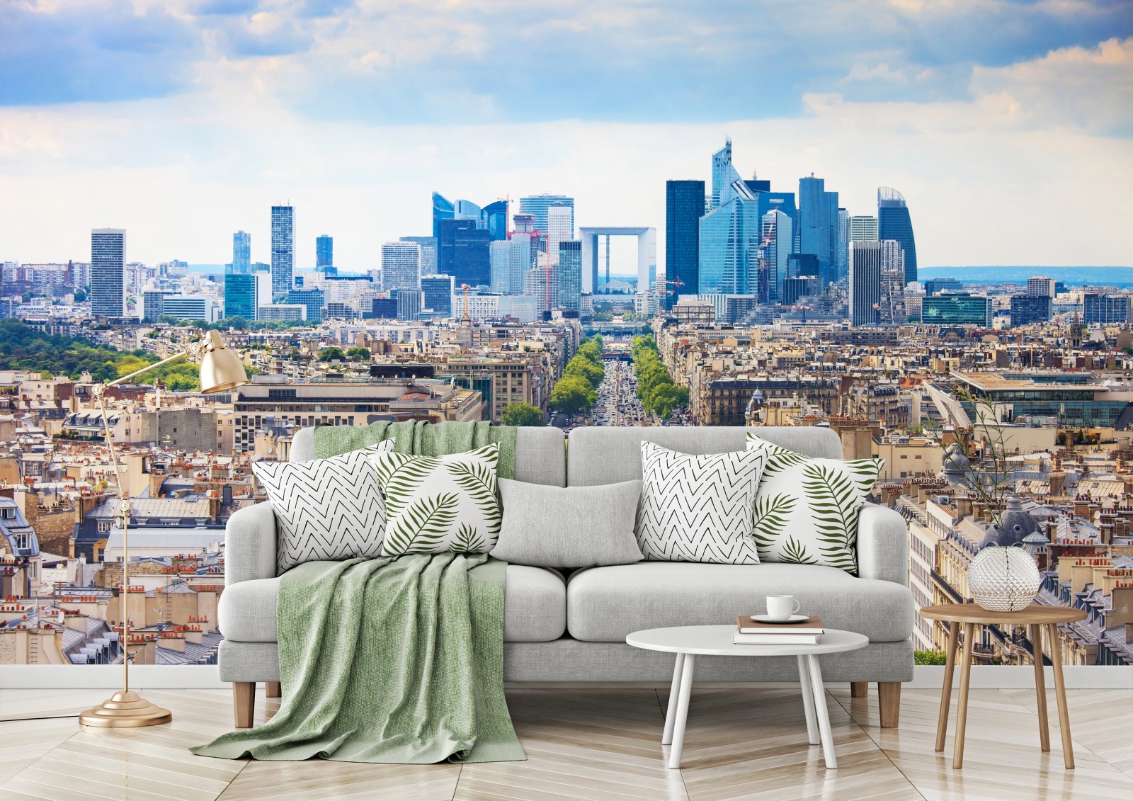 Fototapete Paris skyline über baumgesäumter avenue