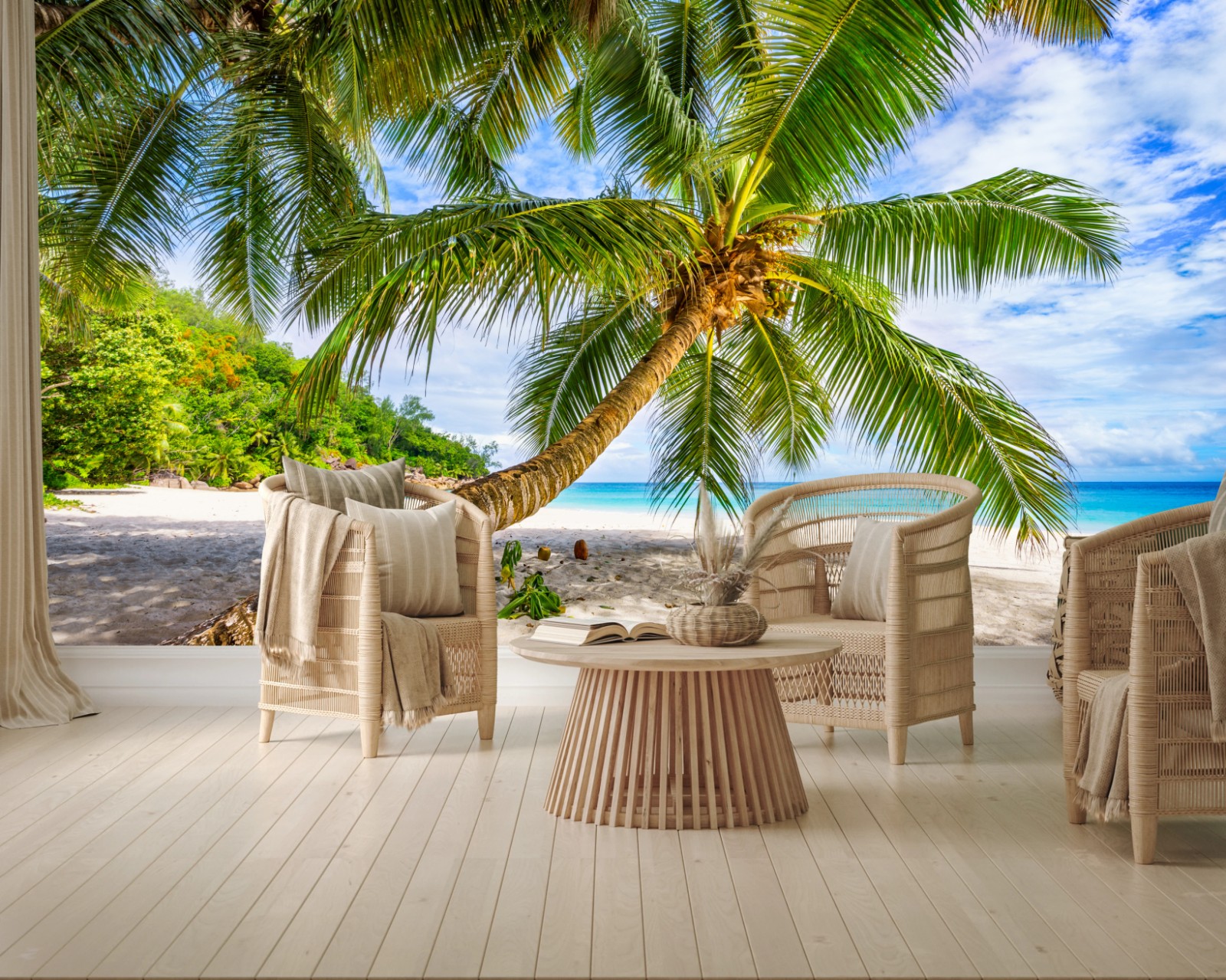 Fototapete Tropische palme am weißen sandstrand