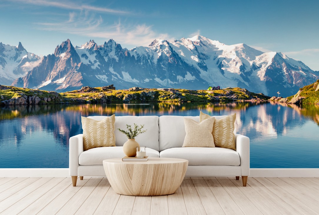 Fototapete Panorama von Mont Blanc über dem Lac Blanc