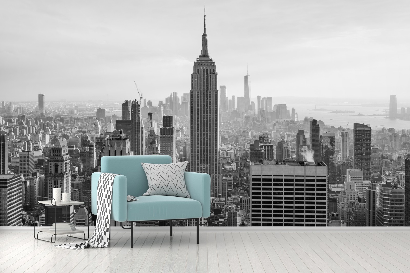 Zeitlose schwarzweiß-aufnahme der Manhattan-Skyline, die jedem Raum urbanen, eleganten Charakter verleiht.MehrWeniger