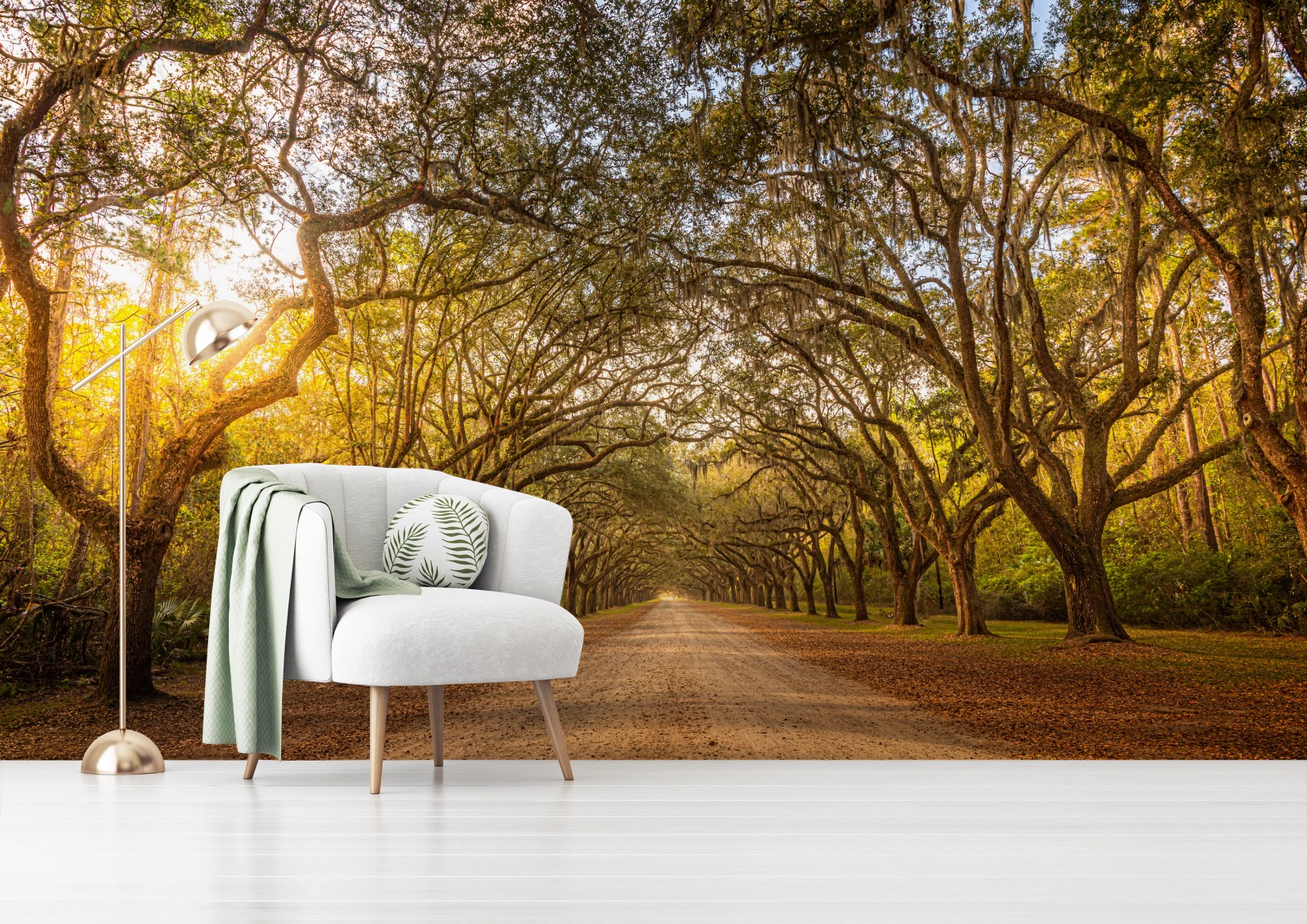 Fototapete Sonnenbeschienene eichenallee bei Savannah