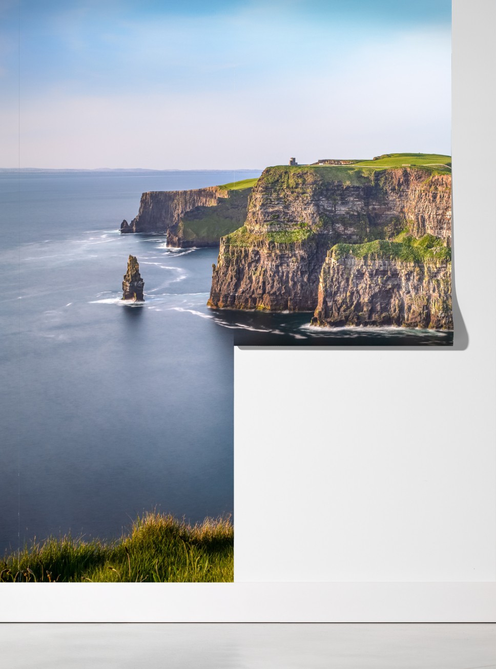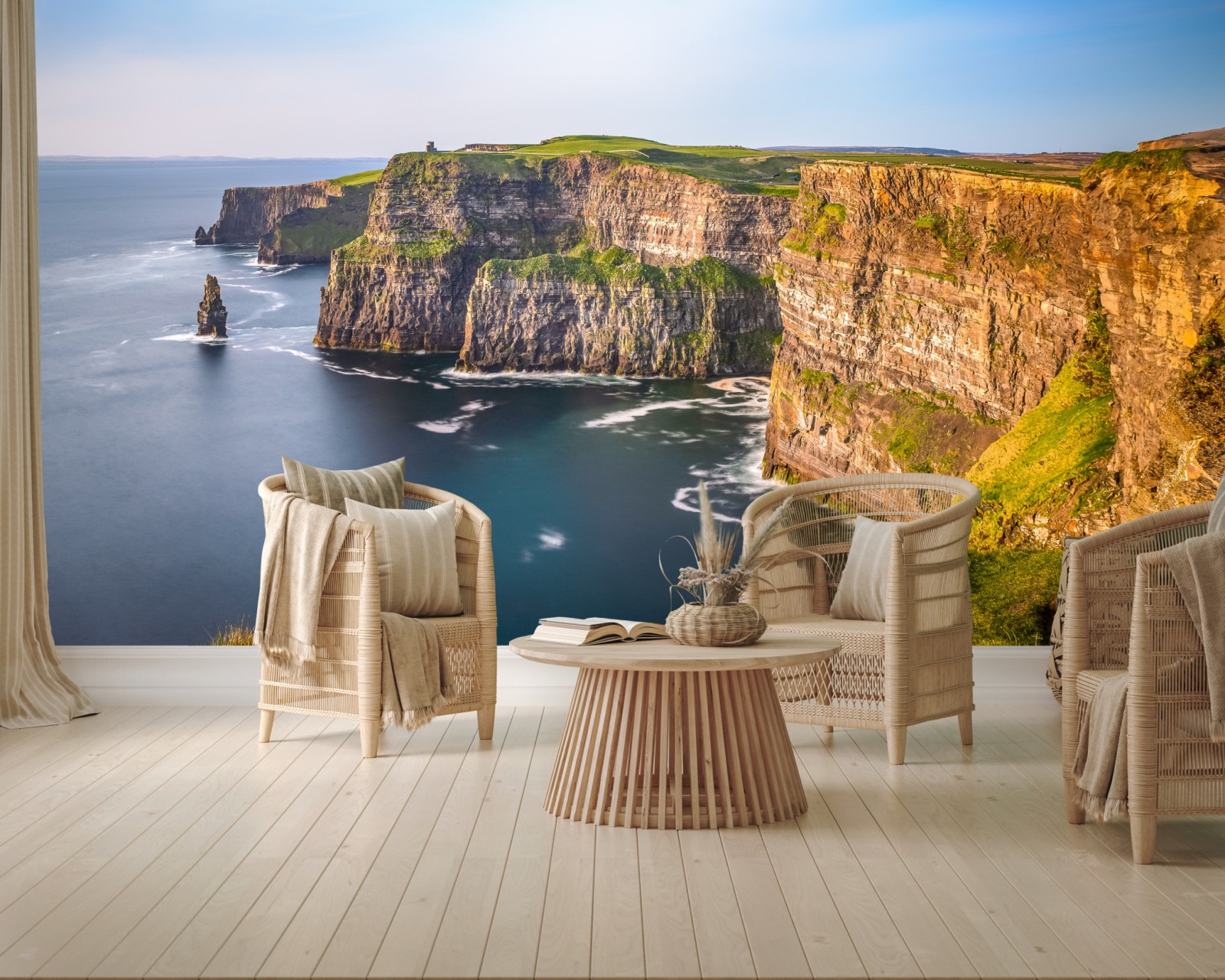 Holen Sie sich die wilde Schönheit der steilen Küstenklippen in Ihr Zuhause mit diesem lebendigen Meereslandschaftsbild, ideal zur Schaffung einer ruhigen, naturverbundenen Atmosphäre.