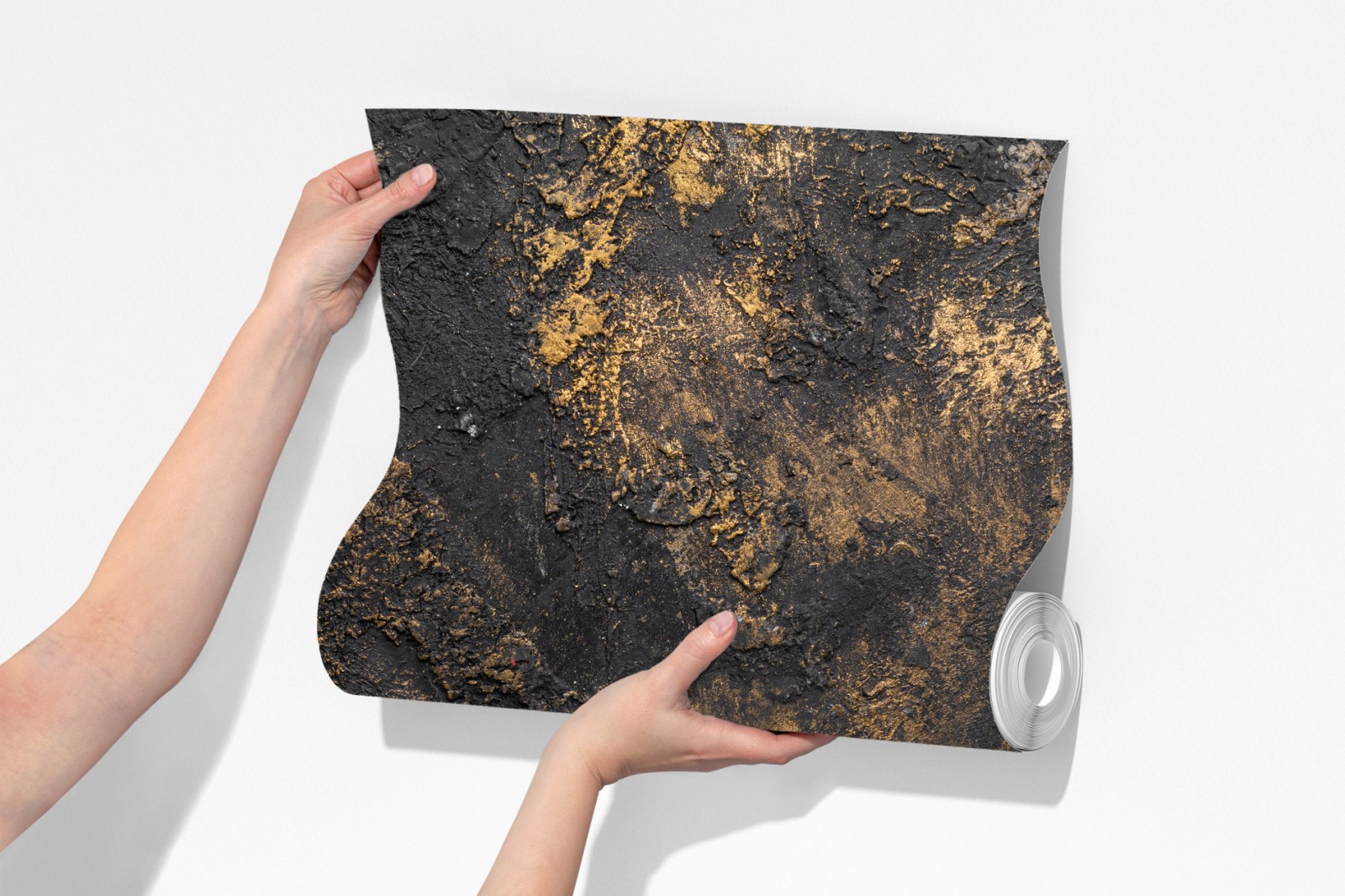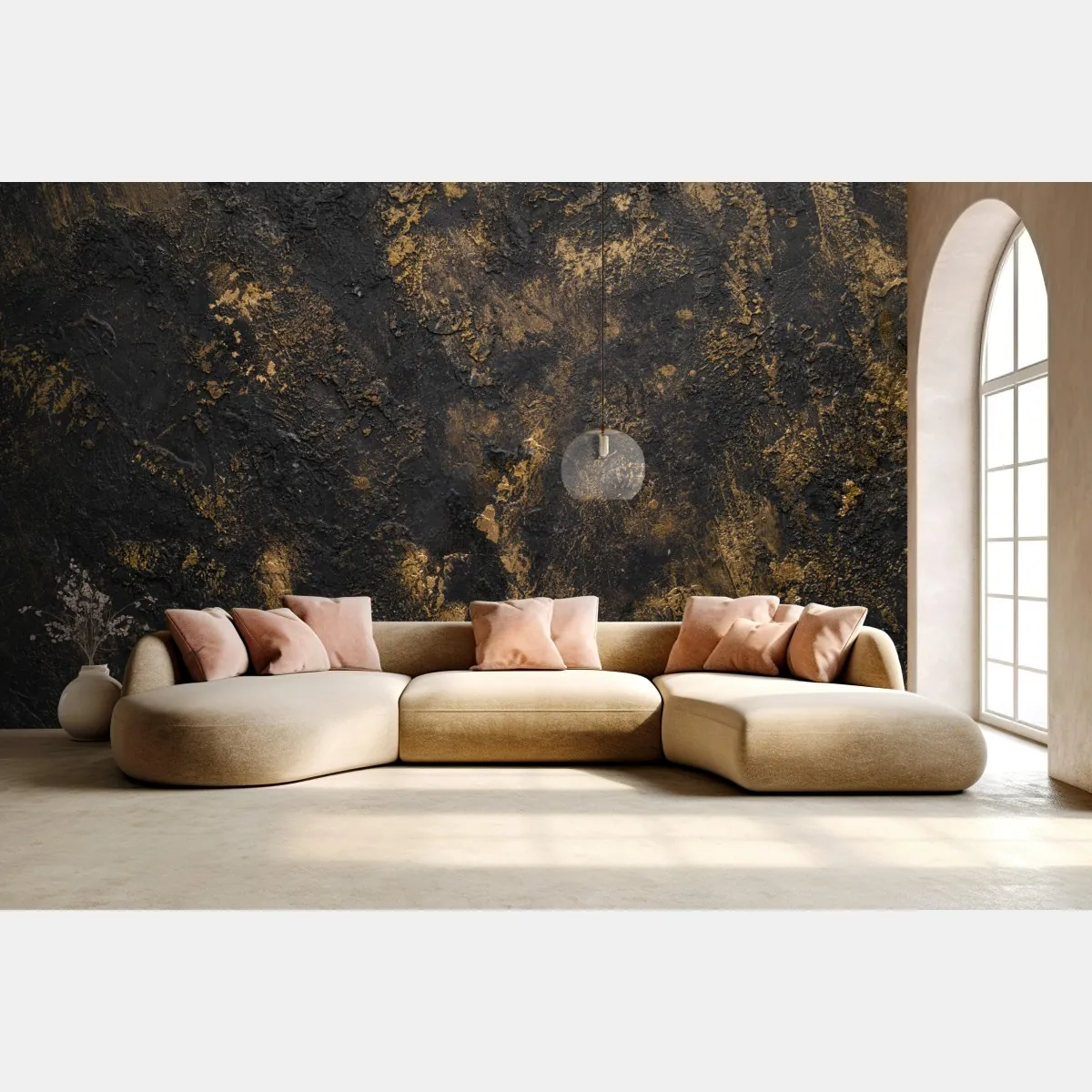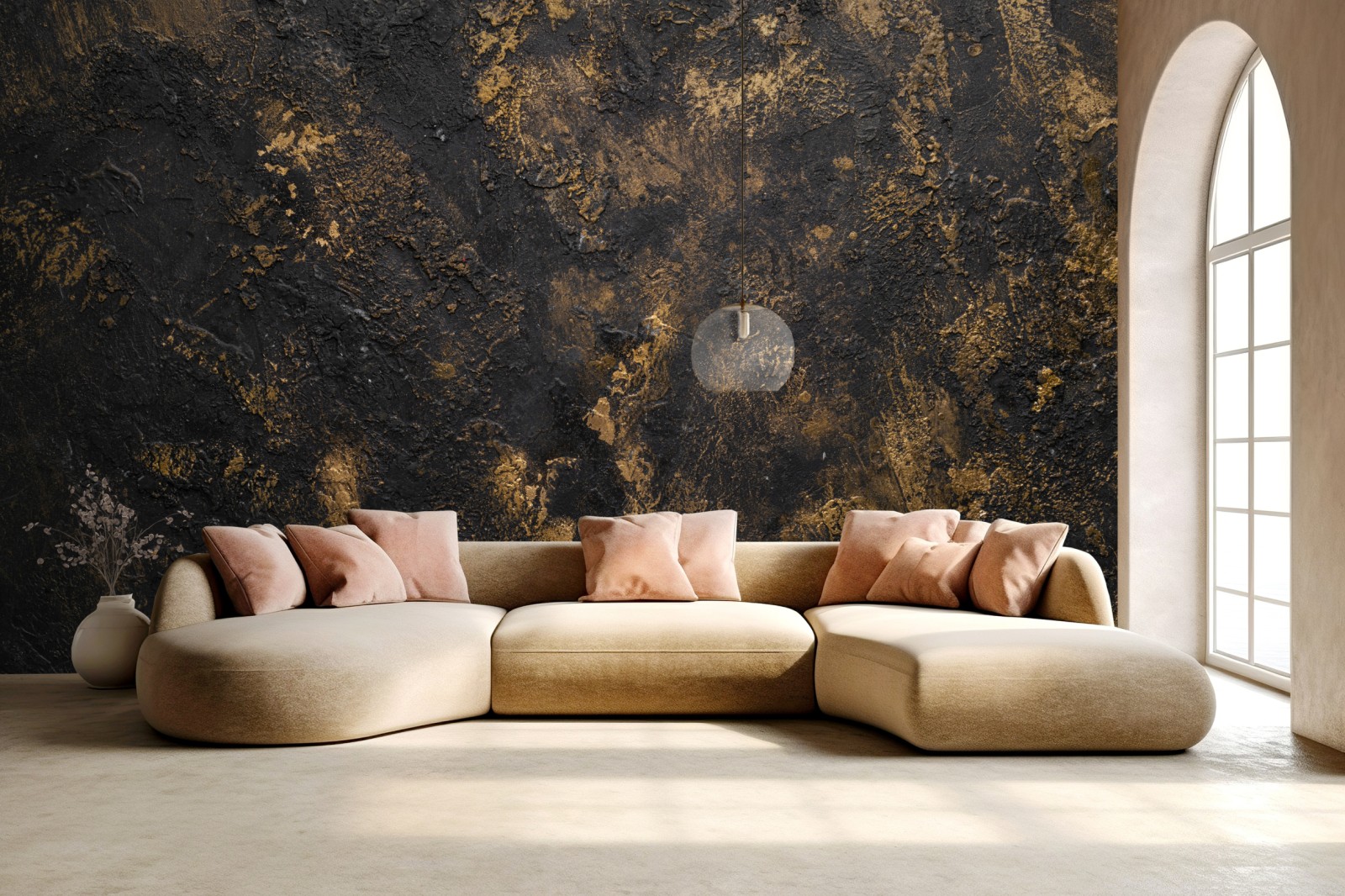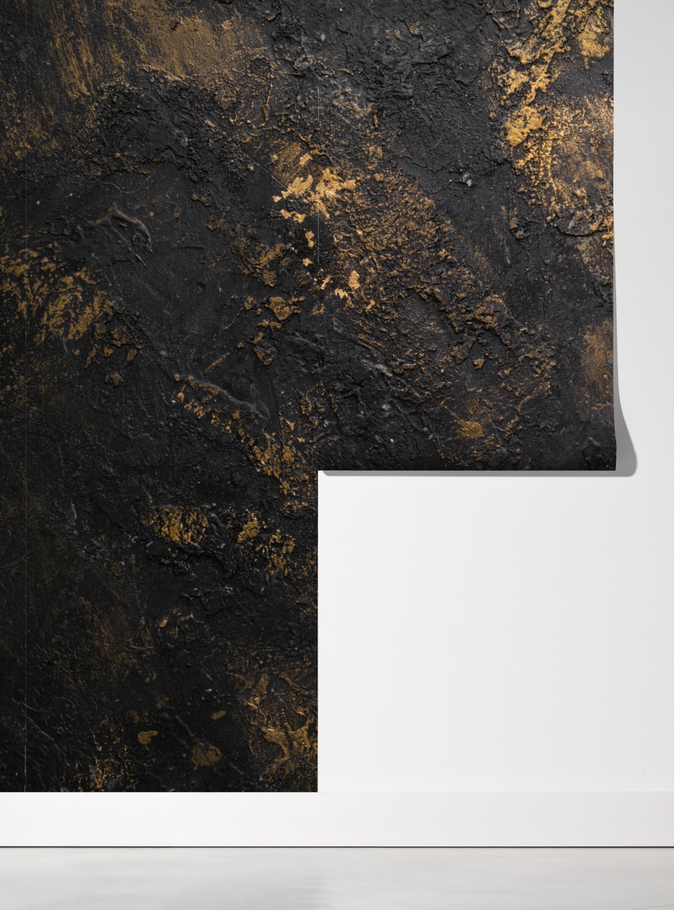 Markante schwarz-goldene Textur verleiht Räumen einen industriellen, luxuriösen Charakter und Tiefe.
