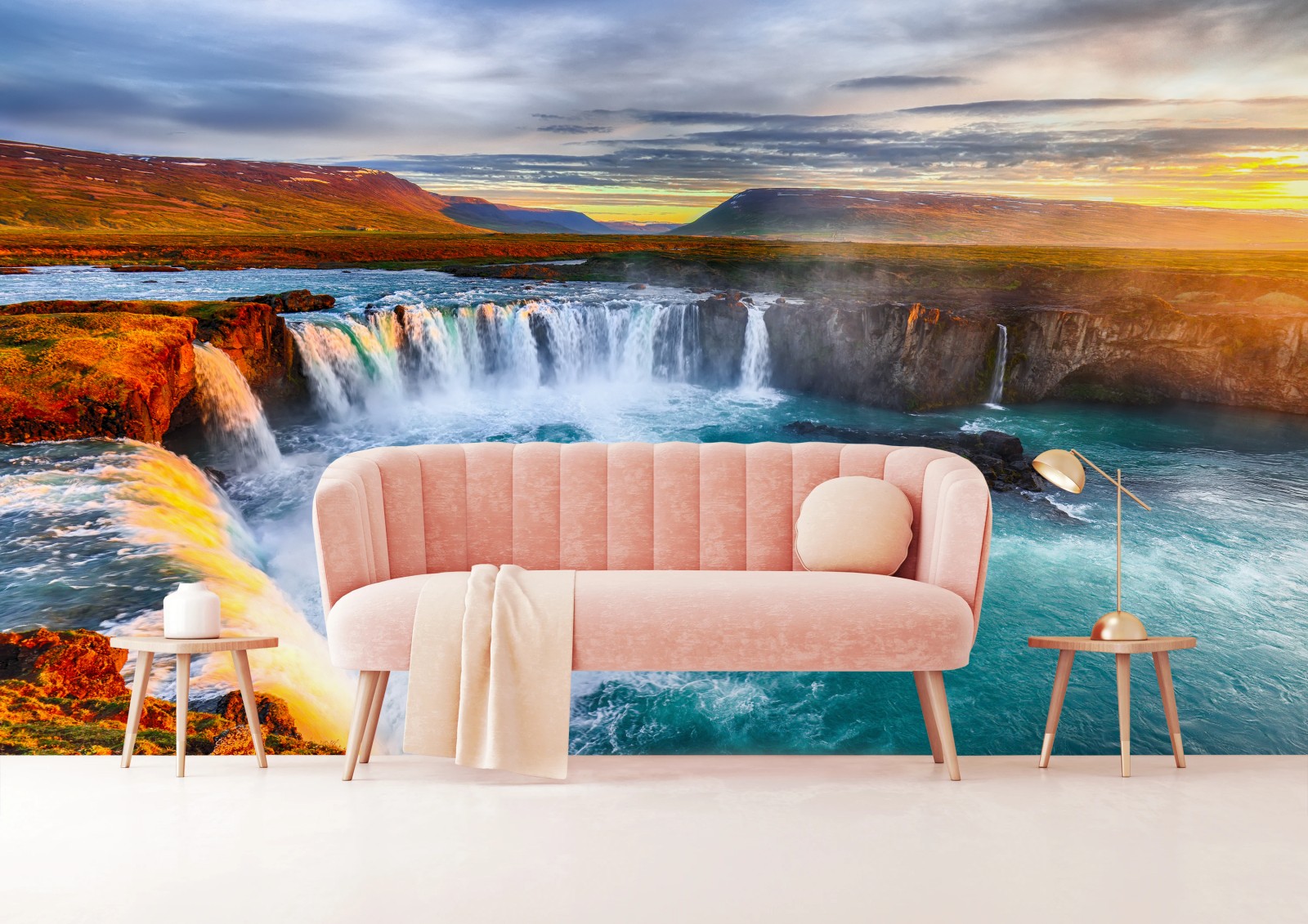 Fototapete Godafoss wasserfall bei sonnenaufgang