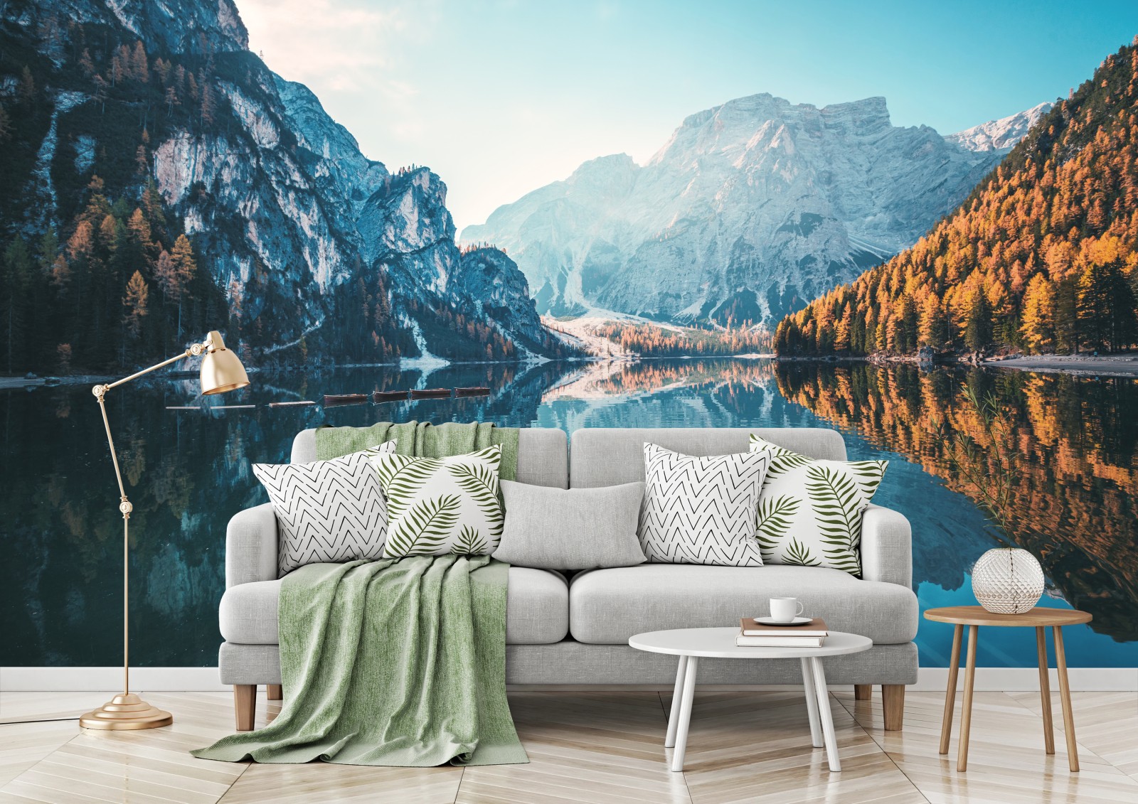 Fototapete Ruhiger morgen am Pragser Wildsee, Dolomiten