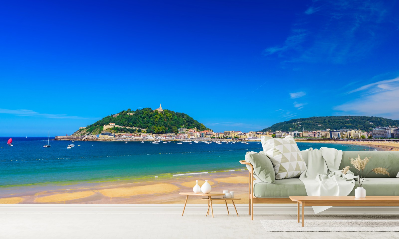Fototapete Sonnige küstenpanorama mit goldenem sand
