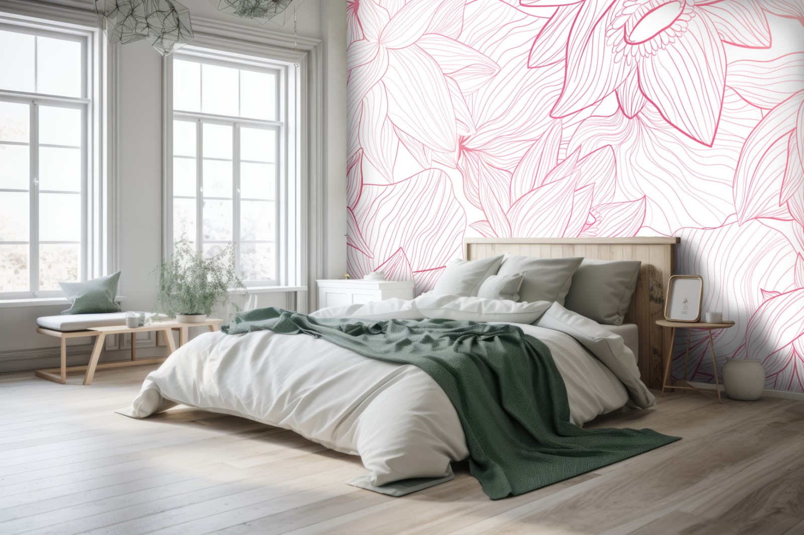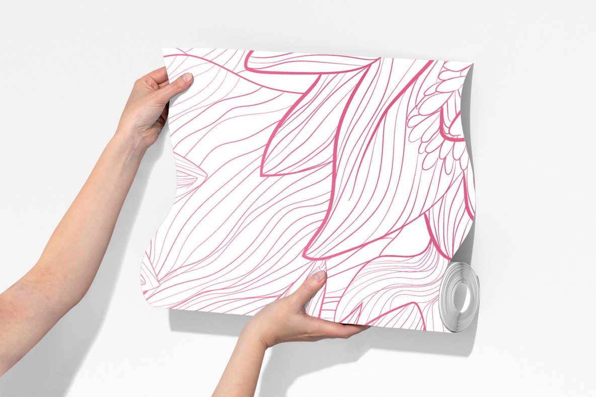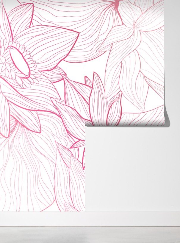 Fototapete zartes rosa blumenlinienmuster – Wallnifity®