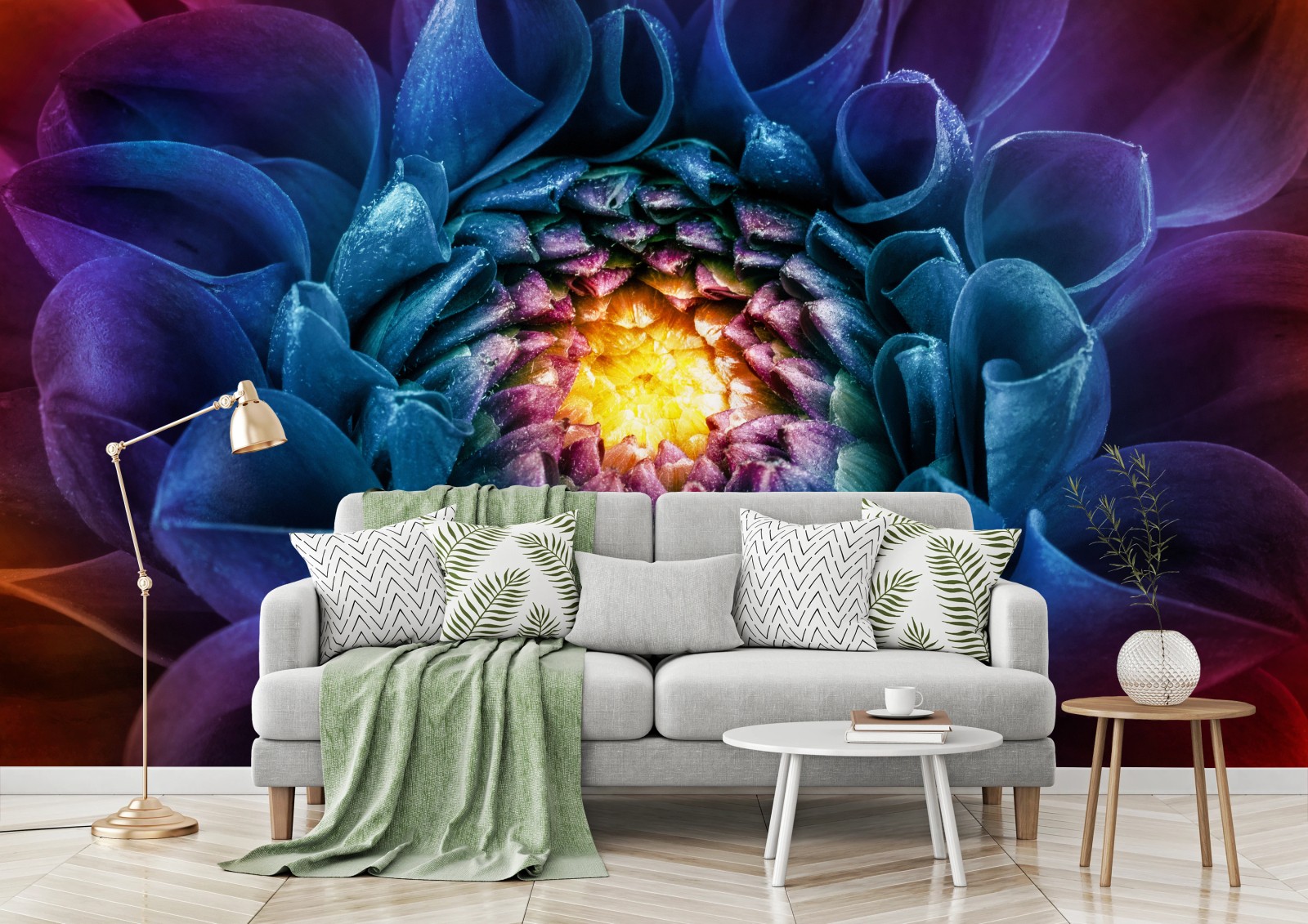 Fototapete Leuchtende blaue chrysantheme nahaufnahme