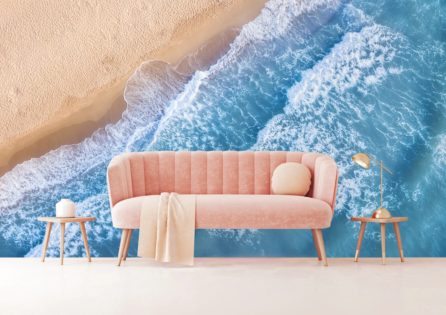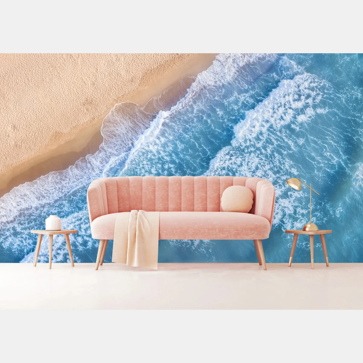 Fototapete Luftaufnahme türkiser wellen an sandigem strand