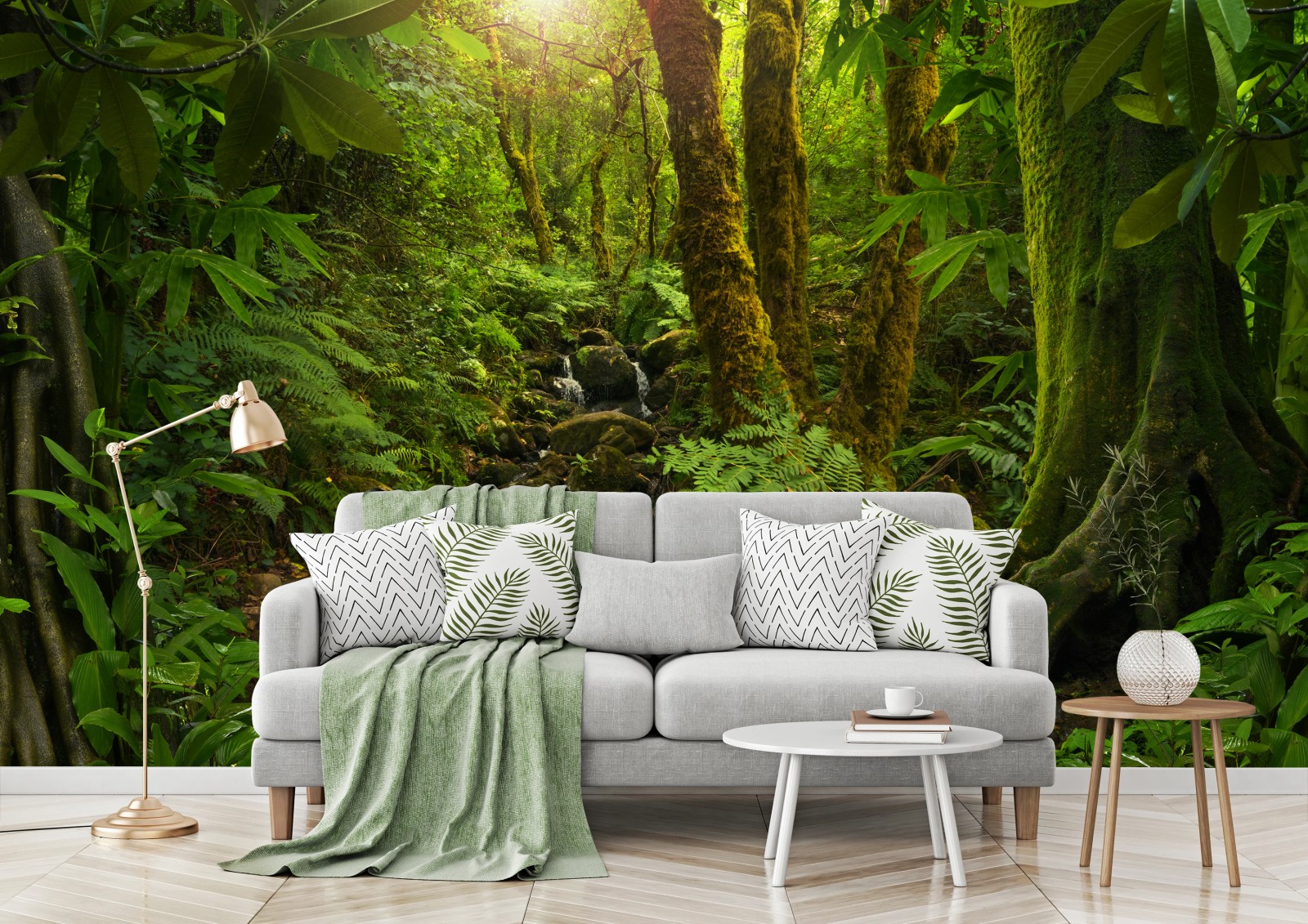 Bringen Sie einen ruhigen, von Sonnenlicht durchfluteten Waldbach mit üppigem Grün und moosbedeckten Bäumen in Ihr Zuhause.MehrWeniger