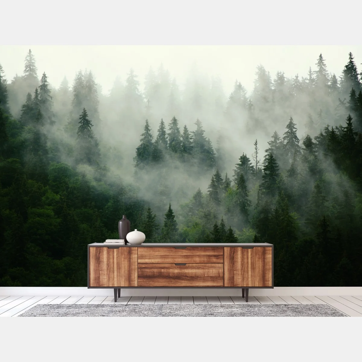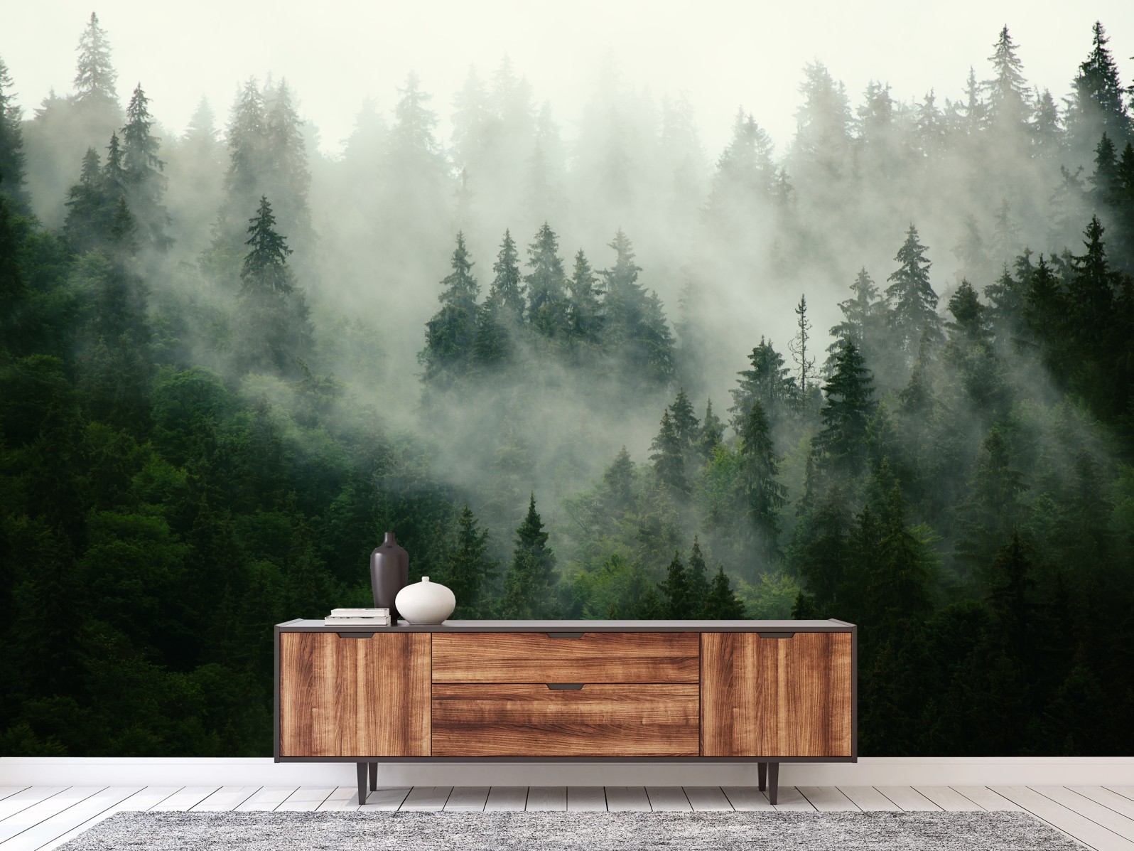 ein nebliger nadelwald, der beruhigende naturstimmung und tiefe in jeden raum bringt.MehrWeniger