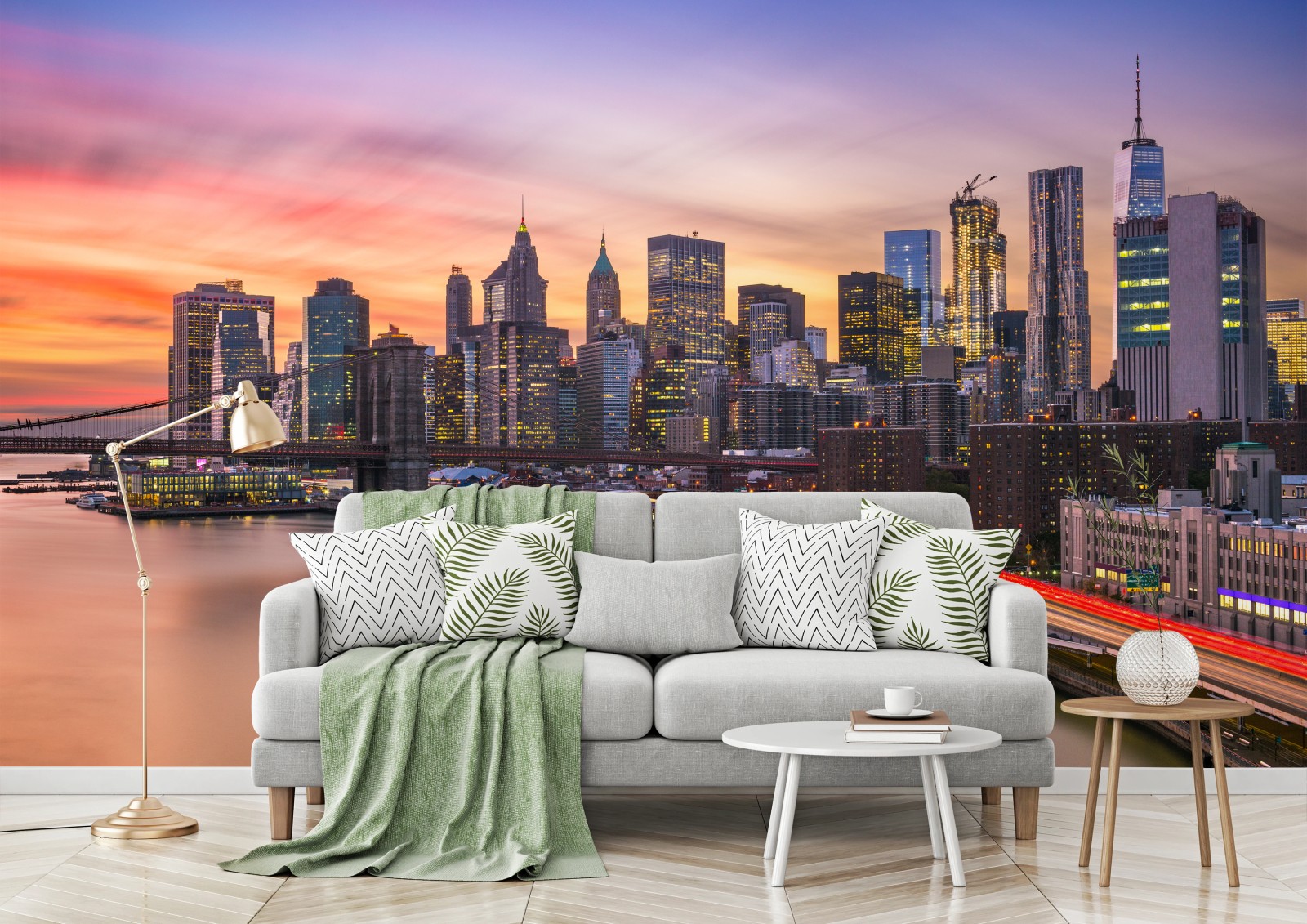 Fototapete Panorama von New York bei sonnenuntergang
