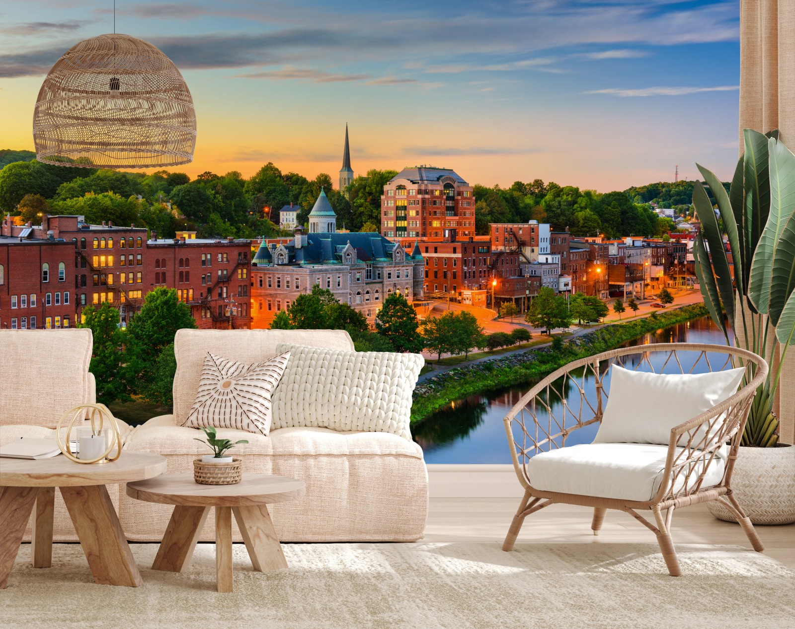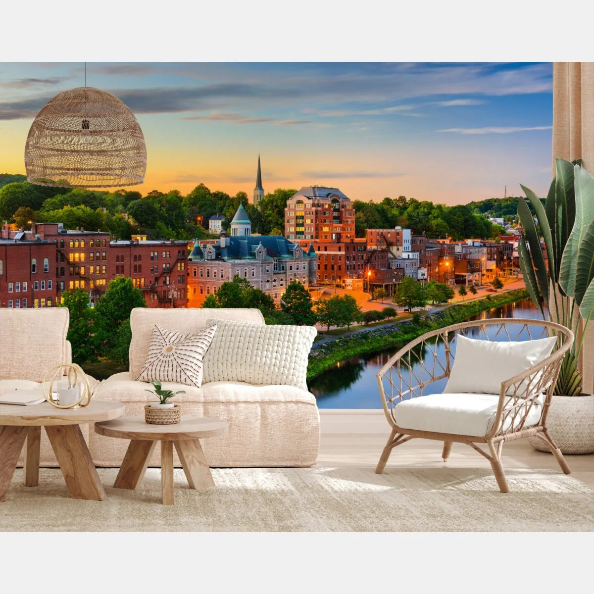 Fototapete Augusta skyline am Kennebec River bei sonnenuntergang