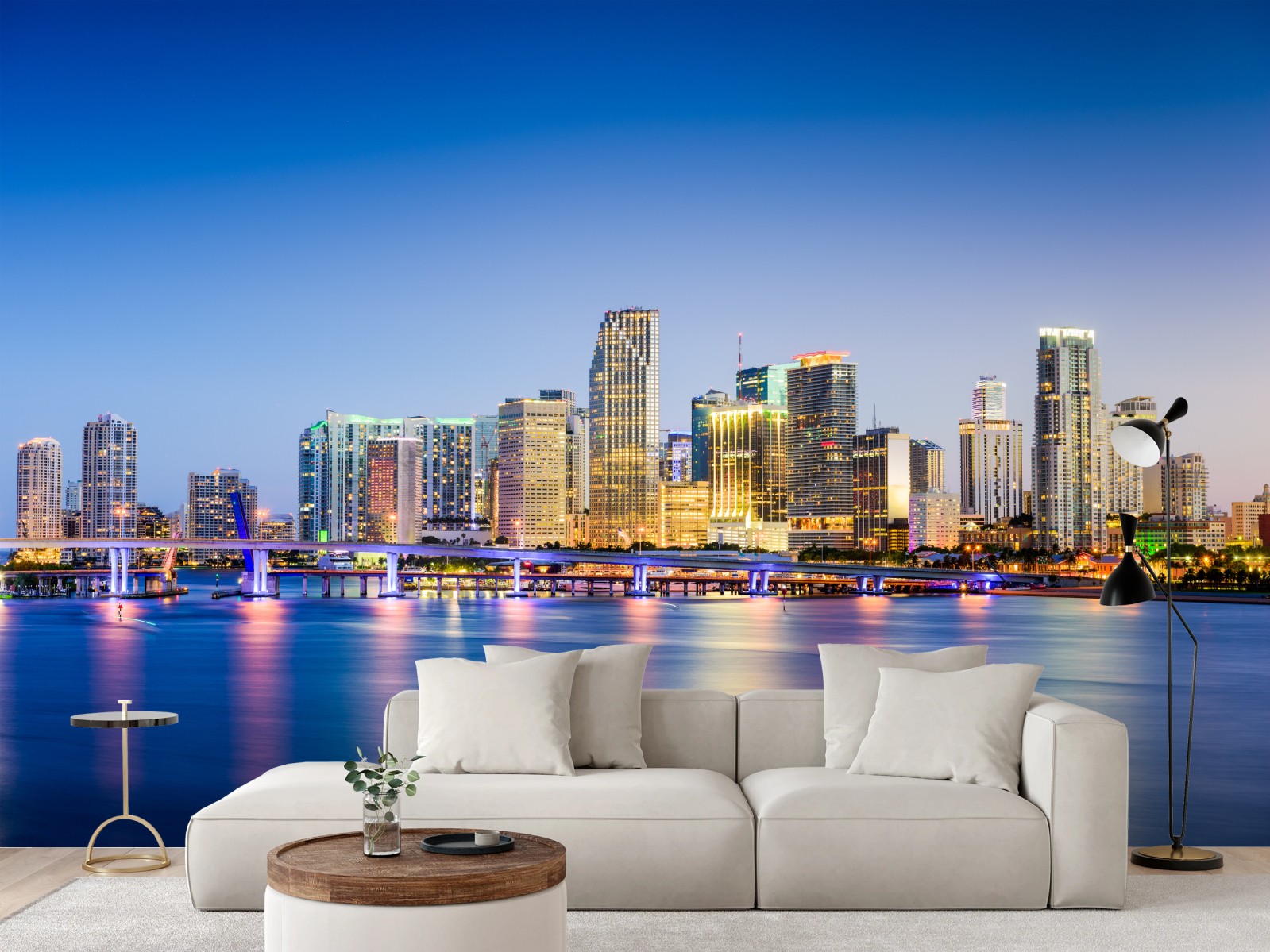 Fototapete Miami skyline der innenstadt bei dämmerung