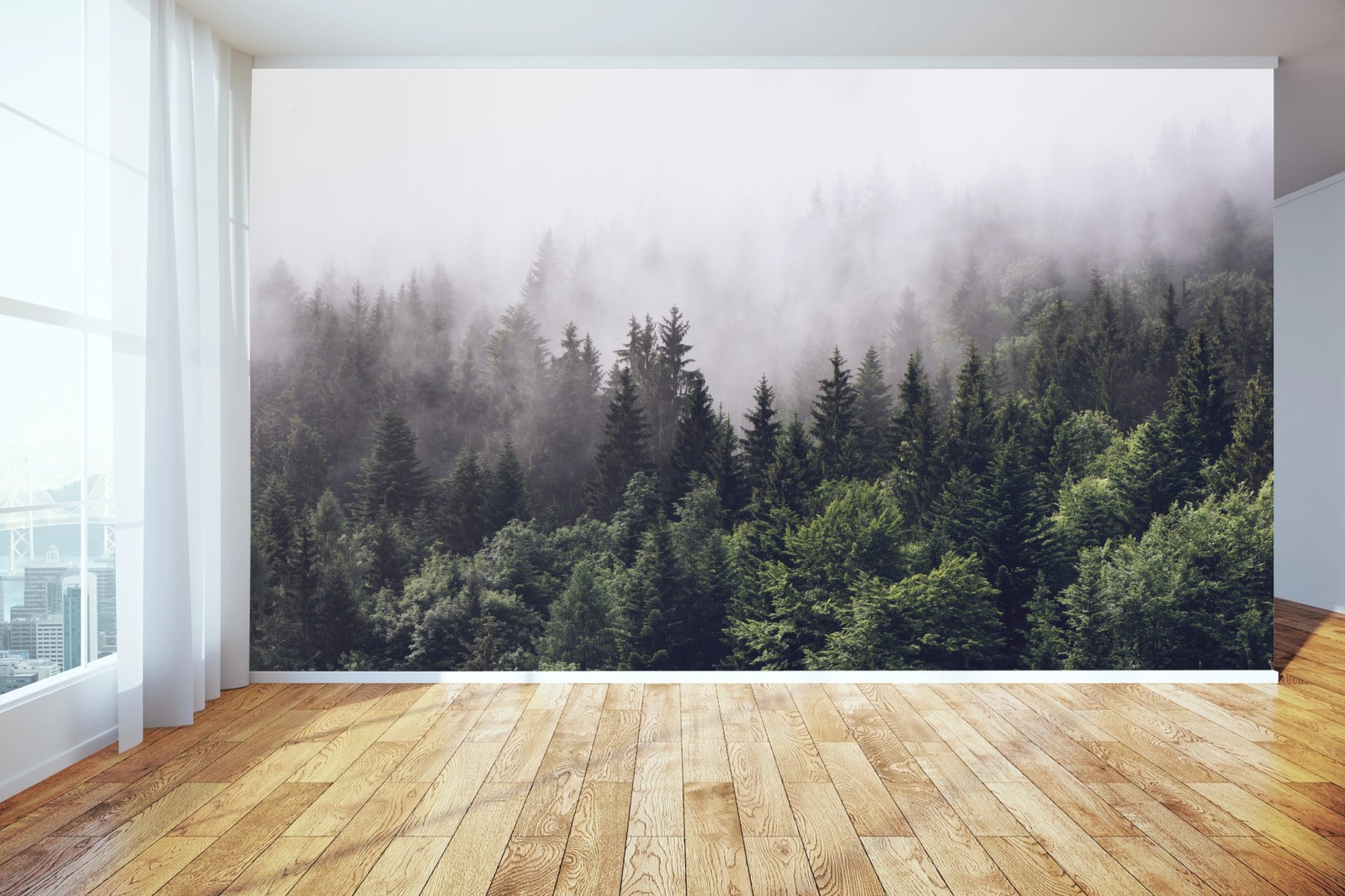 Fototapete Nebelverhangener nadelwald am berghang