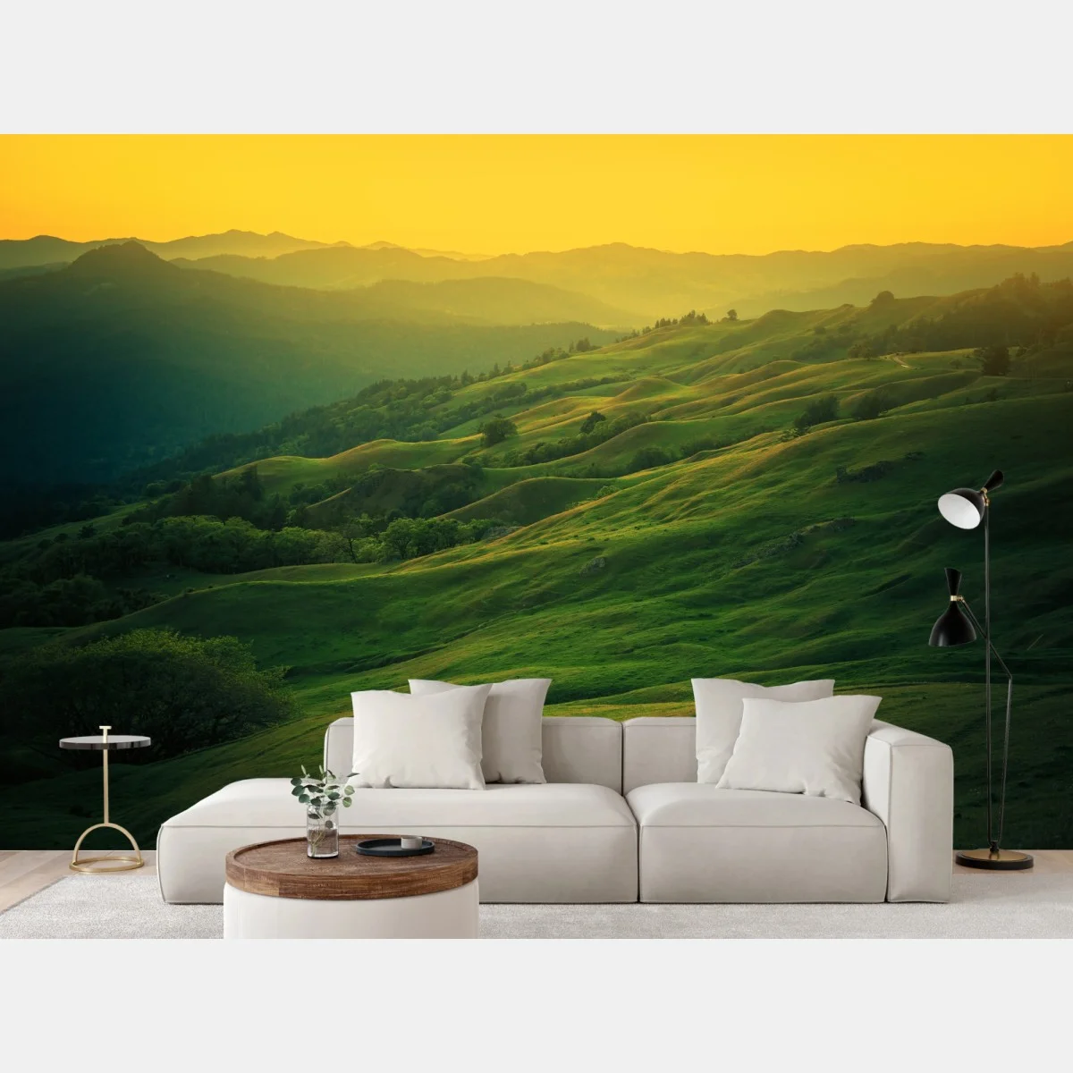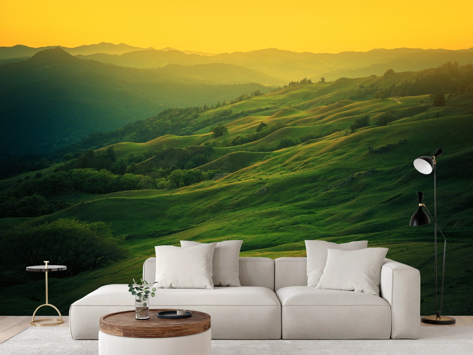 Fototapete Hügel von Nordkalifornien bei sonnenuntergang
