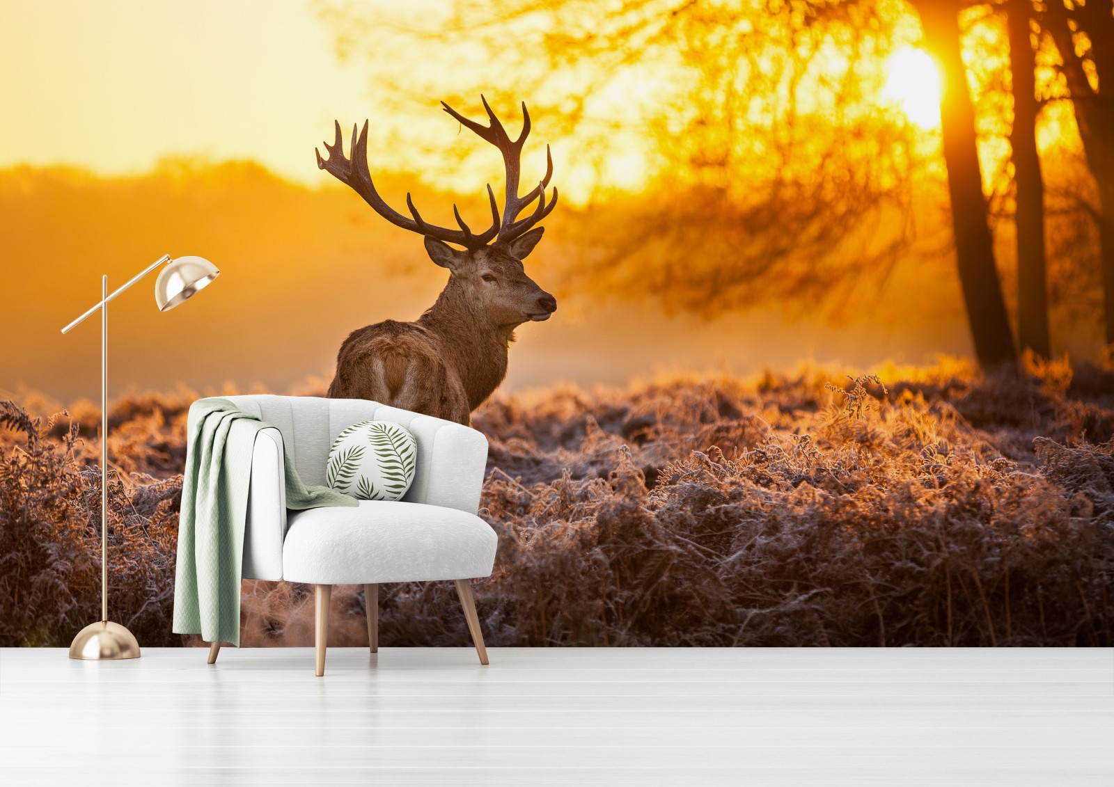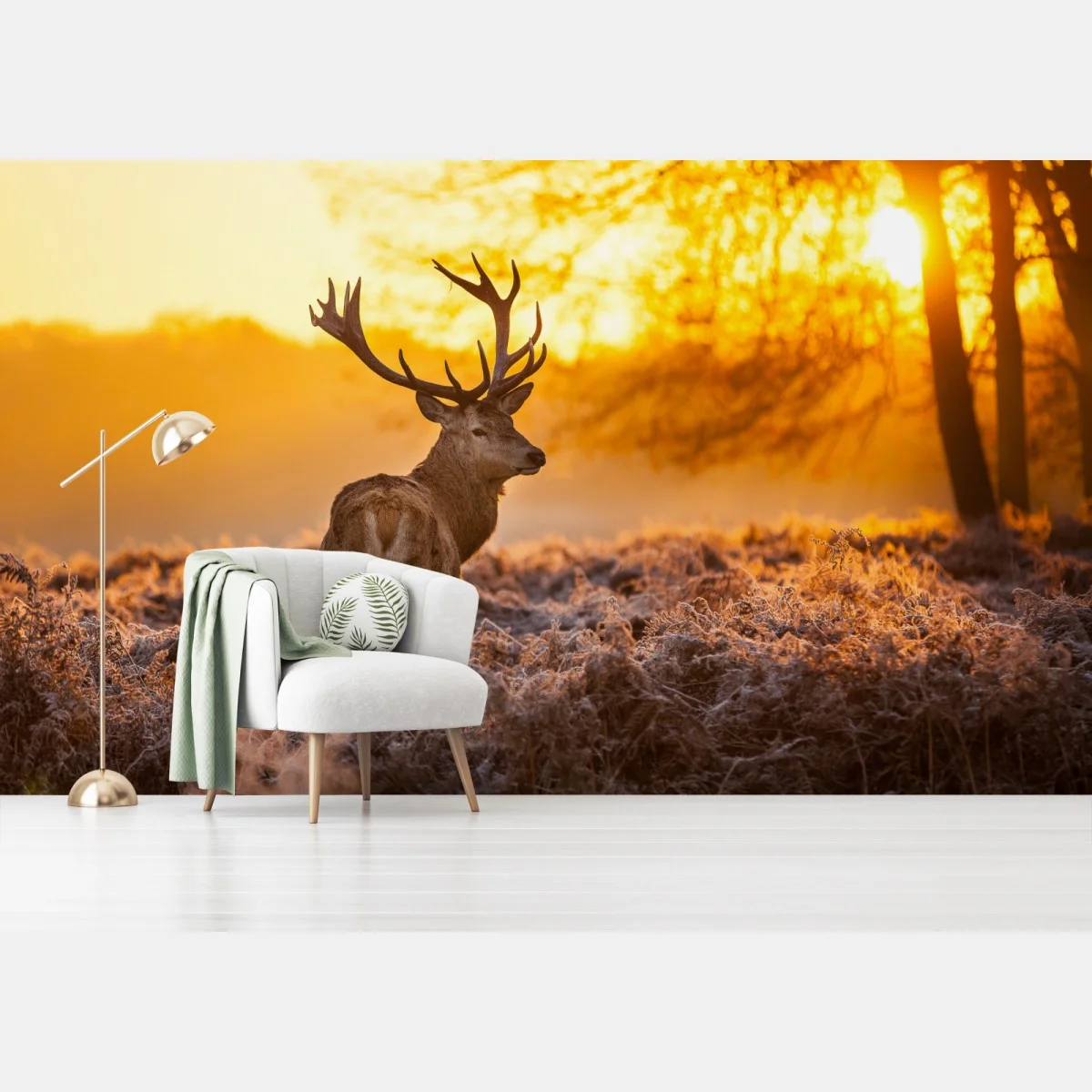 Fototapete Goldener hirsch im sonnenaufgang