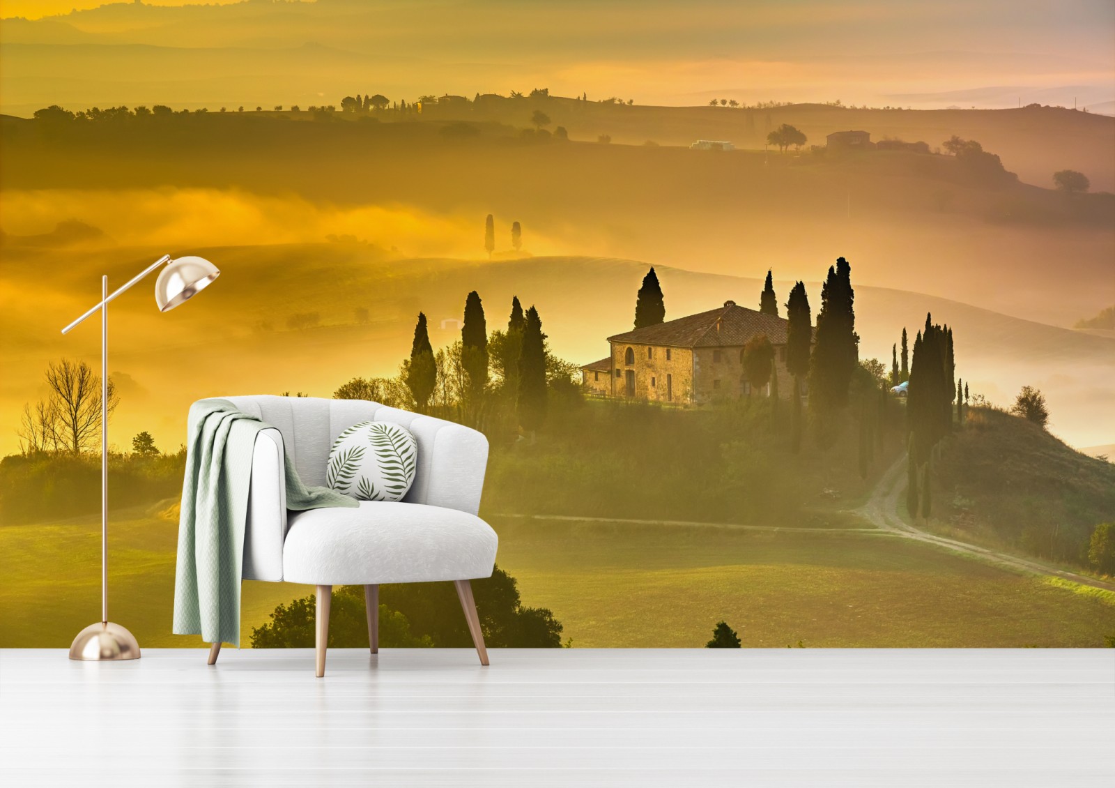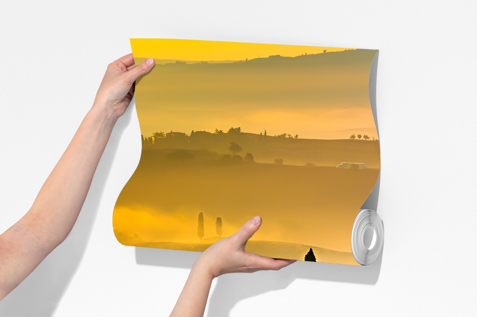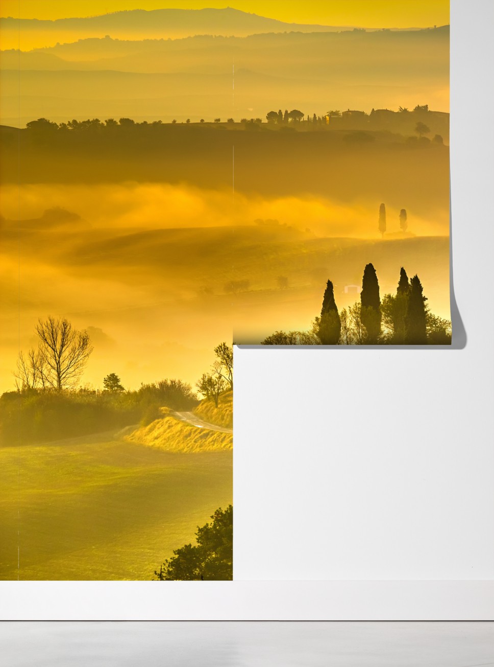Fototapete Toskana bei sonnenaufgang über goldenen hügeln – Wallnifity®