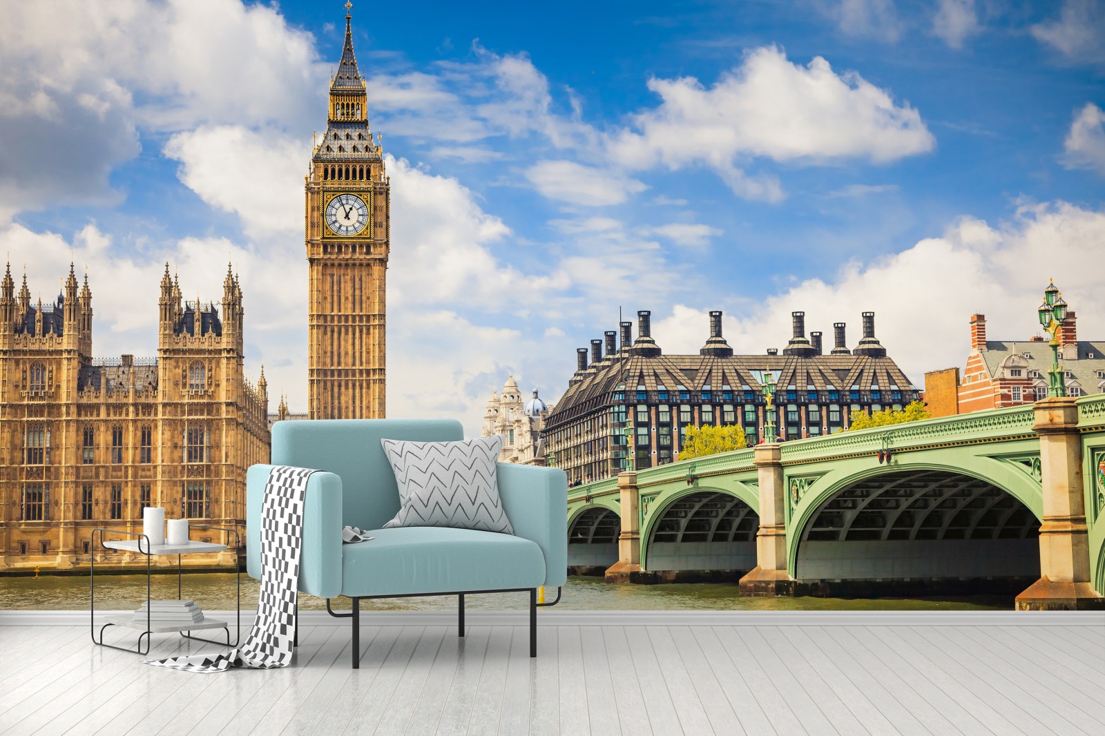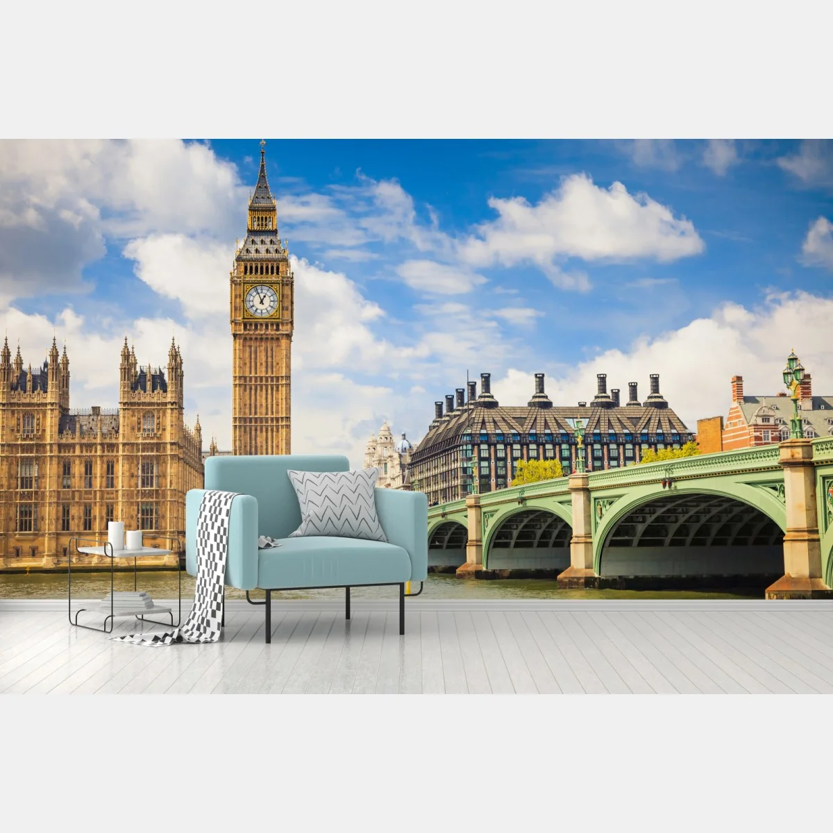 Fototapete London panorama mit uhrturm Big Ben und Westminster Bridge