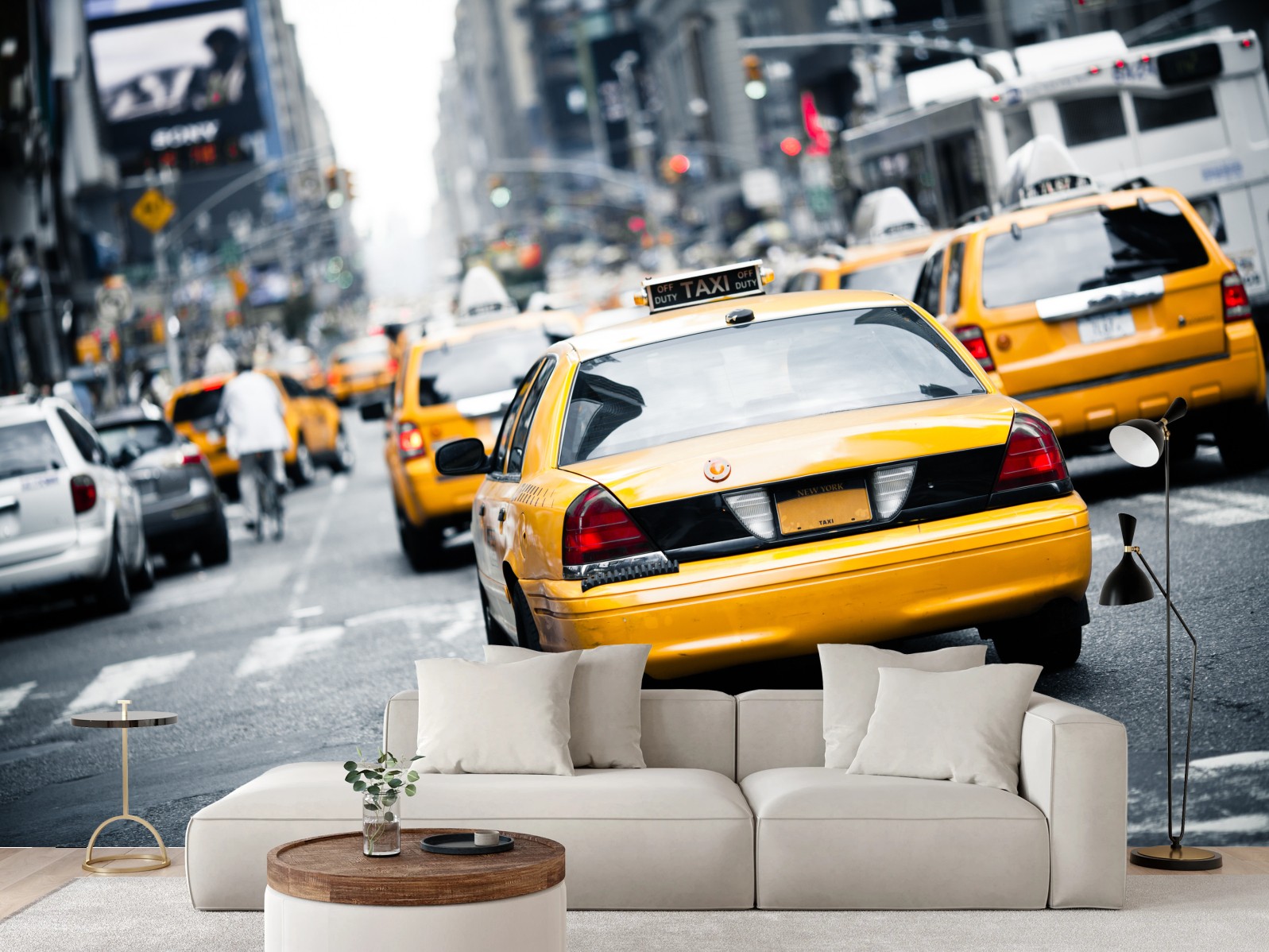 Fototapete Gelbe taxis in einer belebten straße von New York