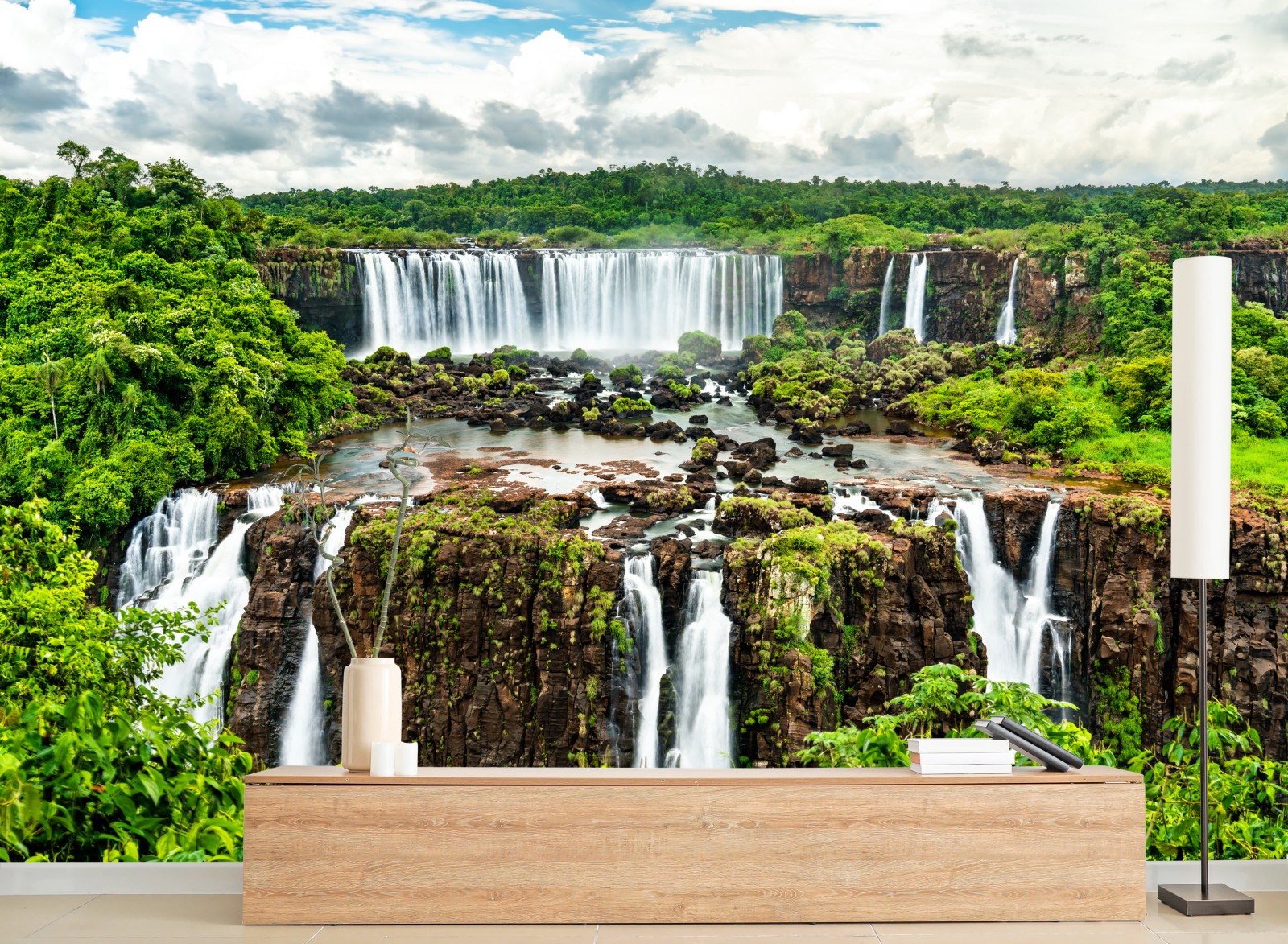 Fototapete Panorama des üppigen grünen wasserfalls