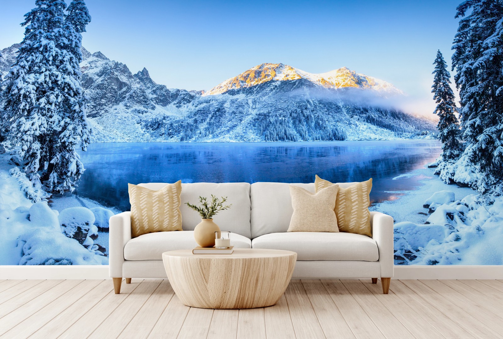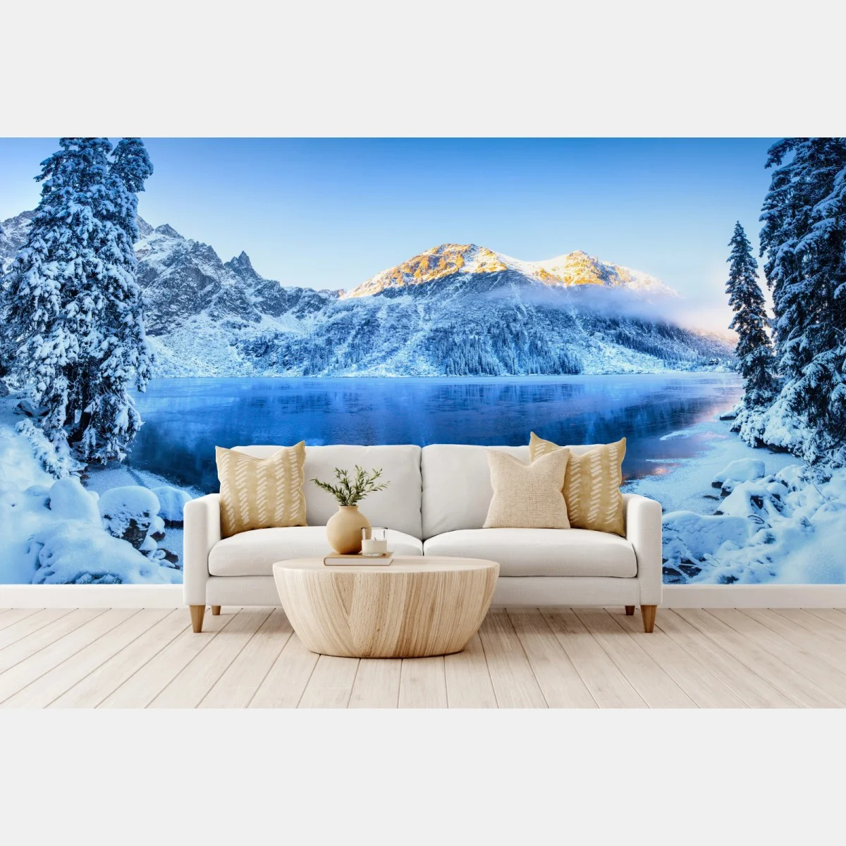 Fototapete Winterlicher sonnenaufgang über dem gefrorenen bergsee