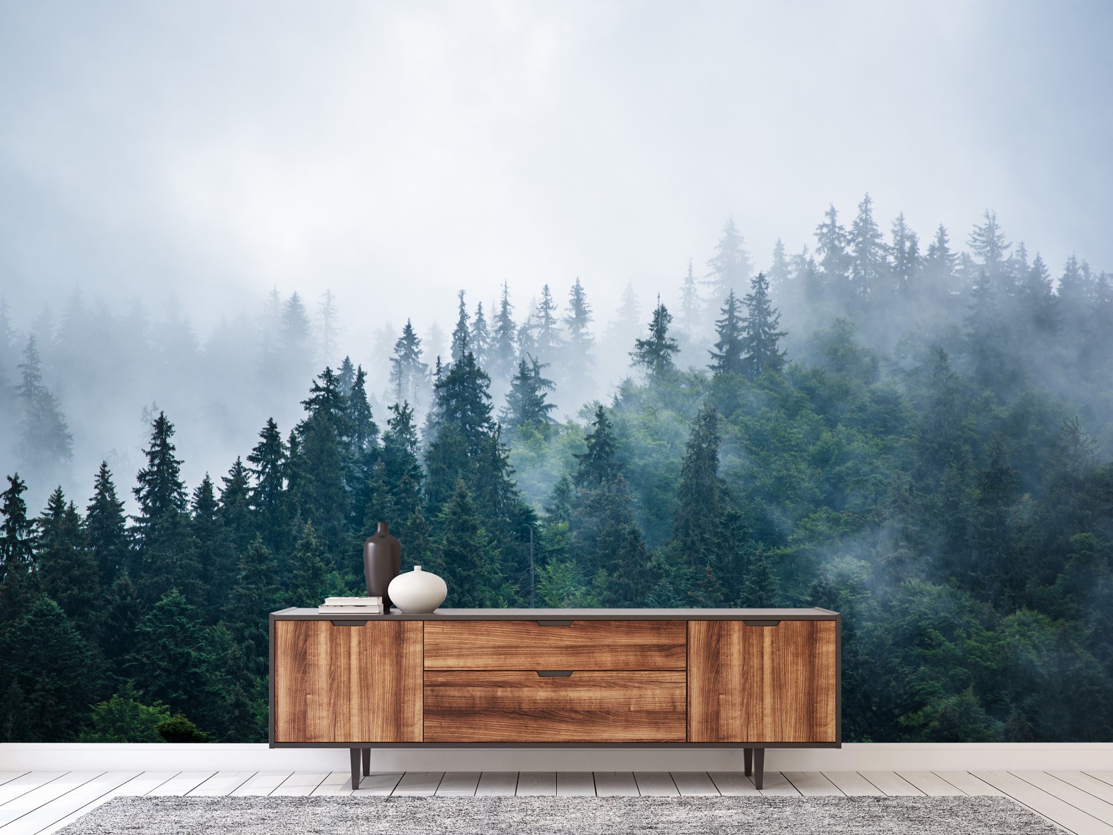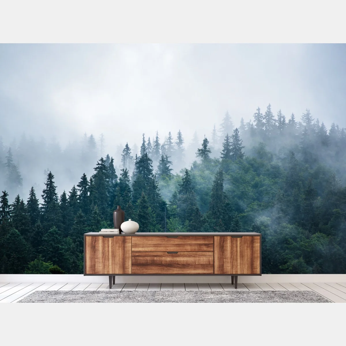 Fototapete Nebliger nadelwald