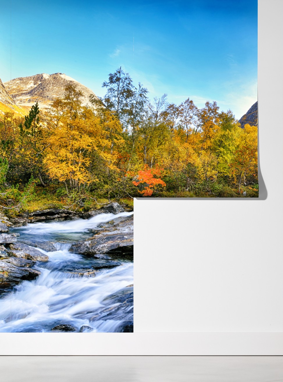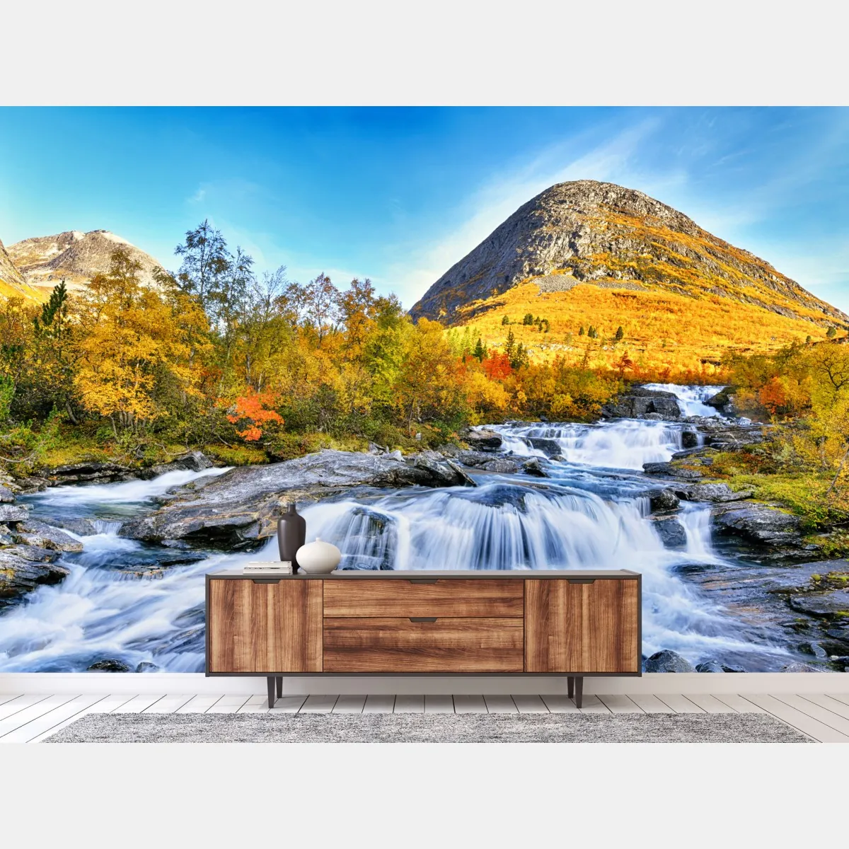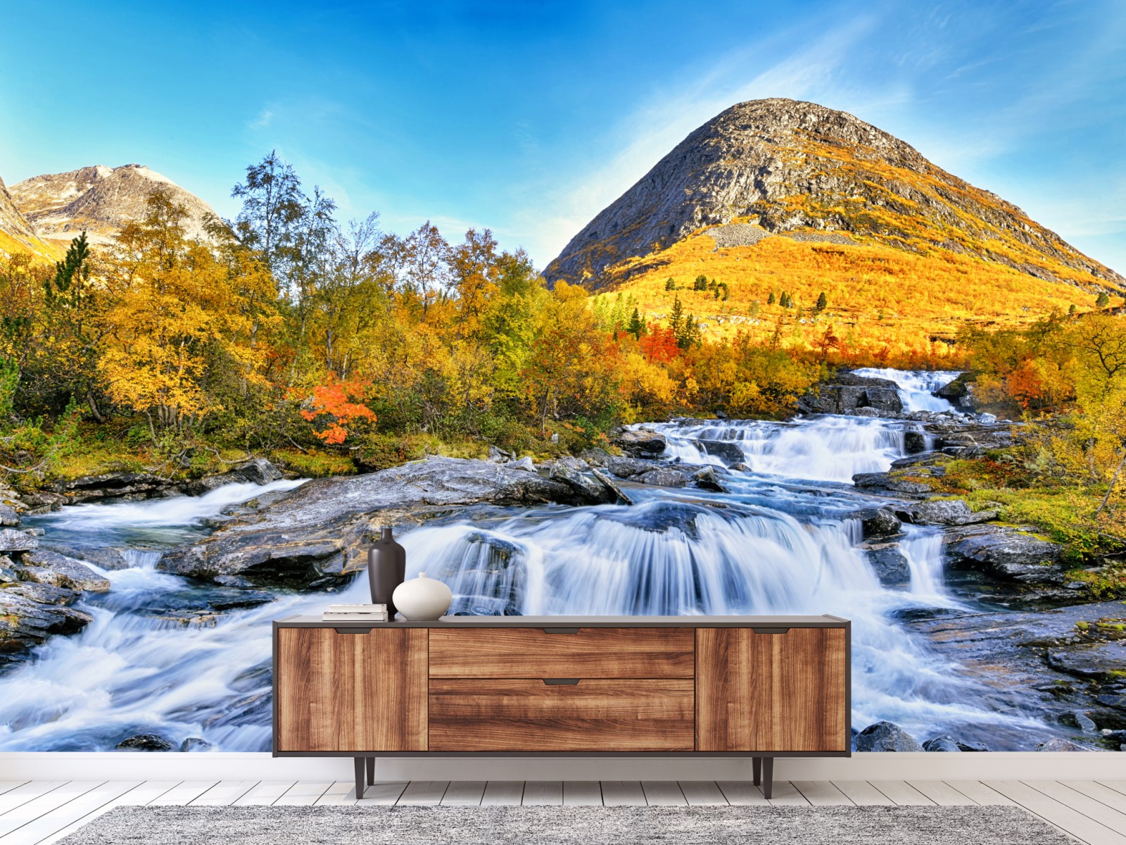 Fototapete goldener herbstwasserfall – Wallnifity®