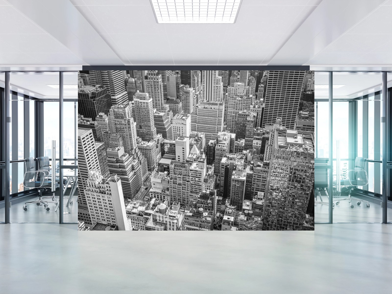 Fototapete Luftaufnahme einer städtischen skyline in schwarzweiß