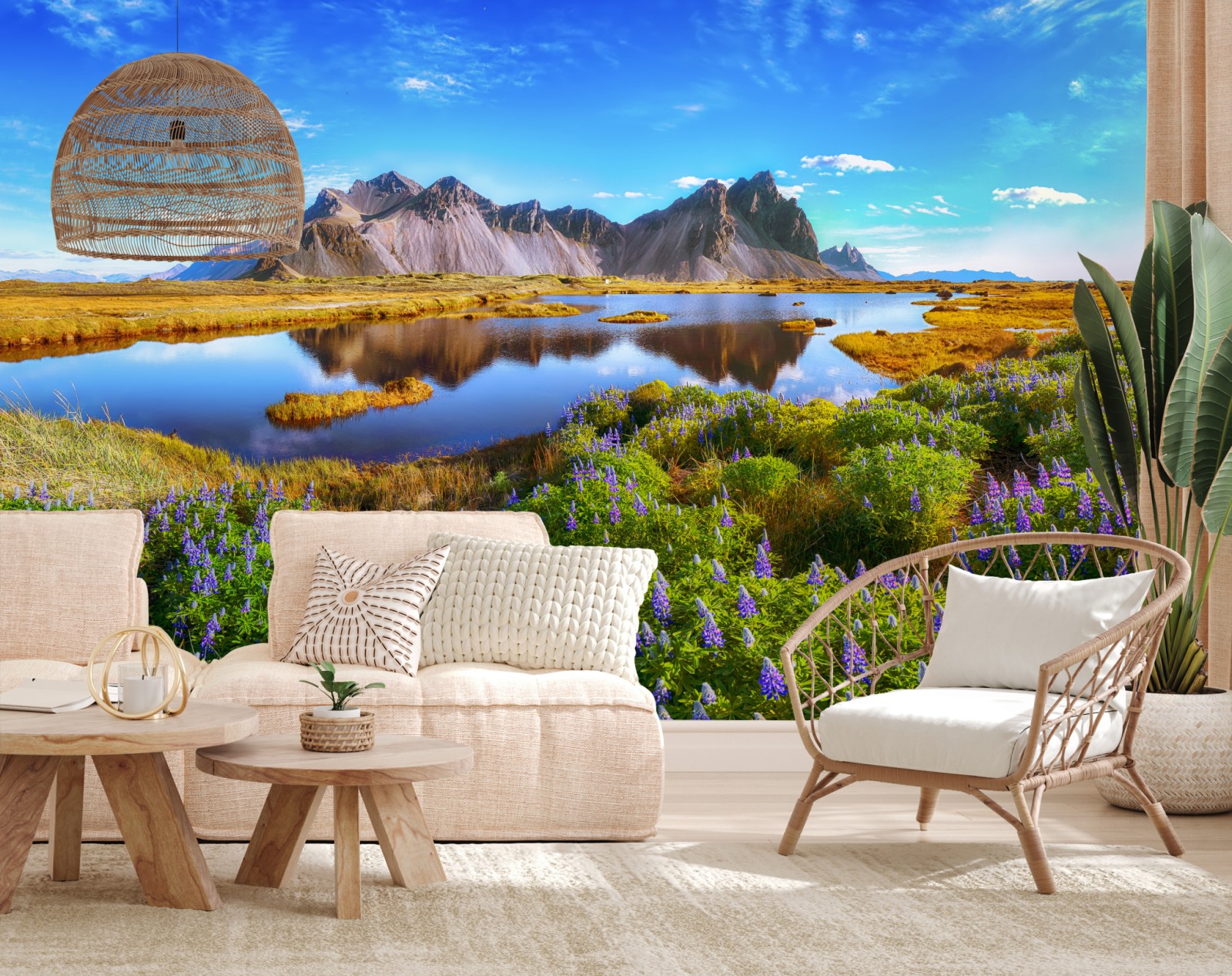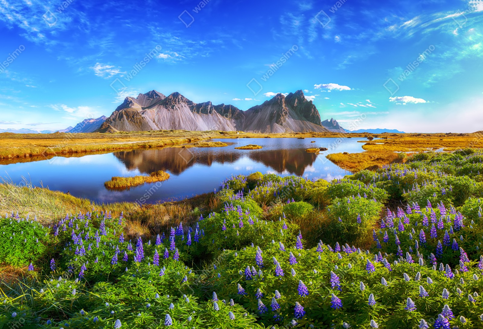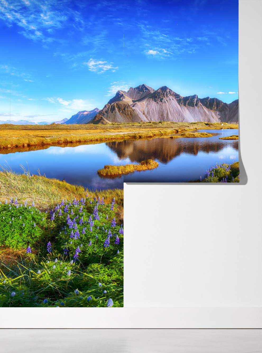 Fototapete lupinenwiese am Vestrahorn, Island – Wallnifity®