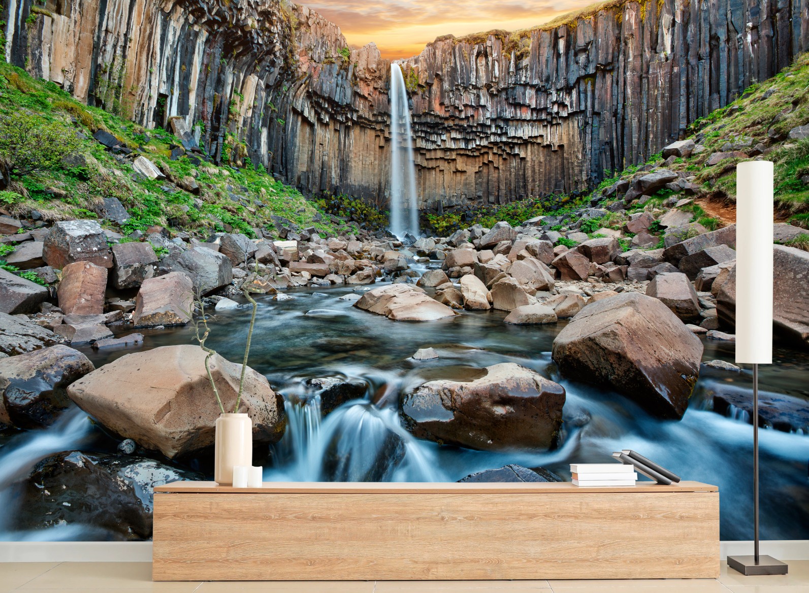 Fototapete Dramatischer wasserfall zwischen basaltklippen