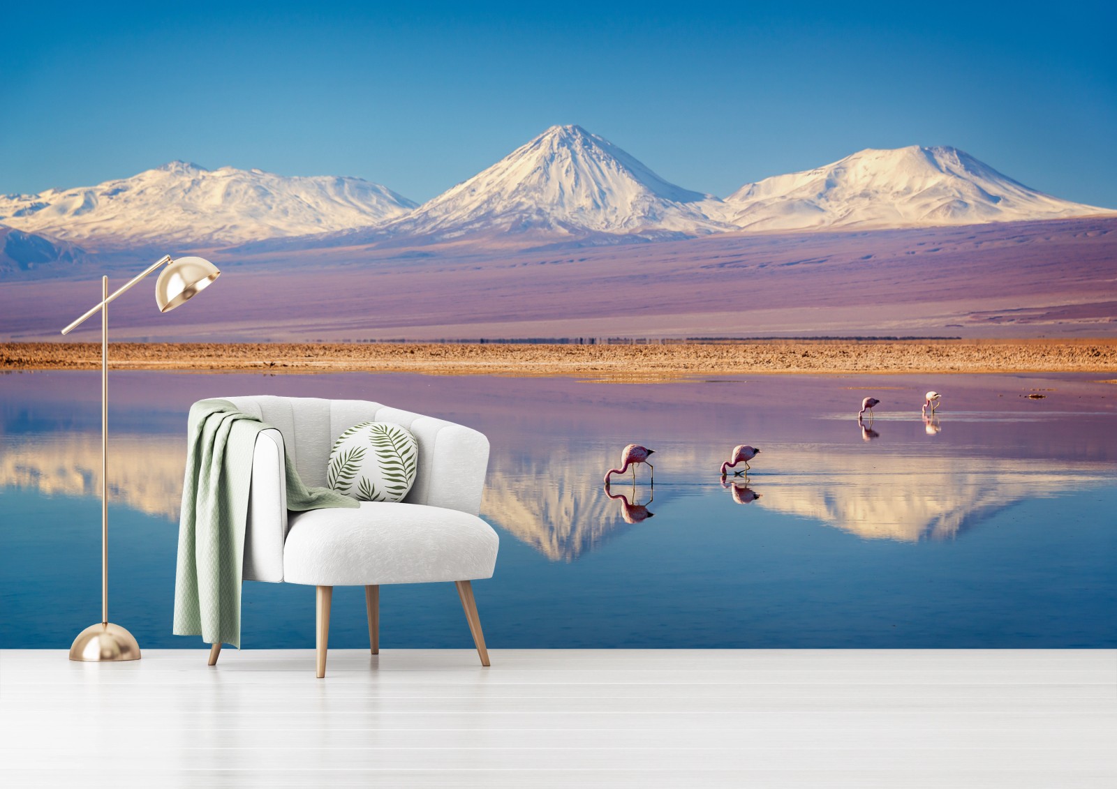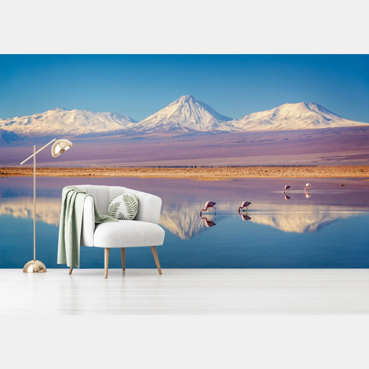 Fototapete Laguna Chaxa mit flamingos und Licancabur