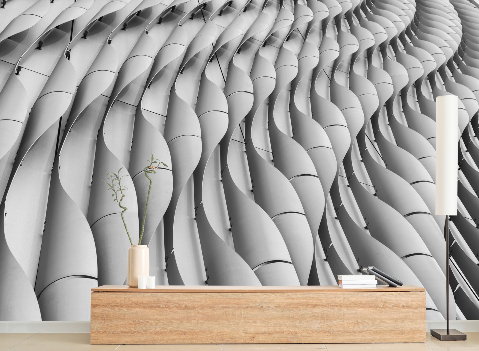 Ein markantes monochromes Architekturmotiv, das modernen Minimalismus und Rhythmus in jeden Raum bringt.