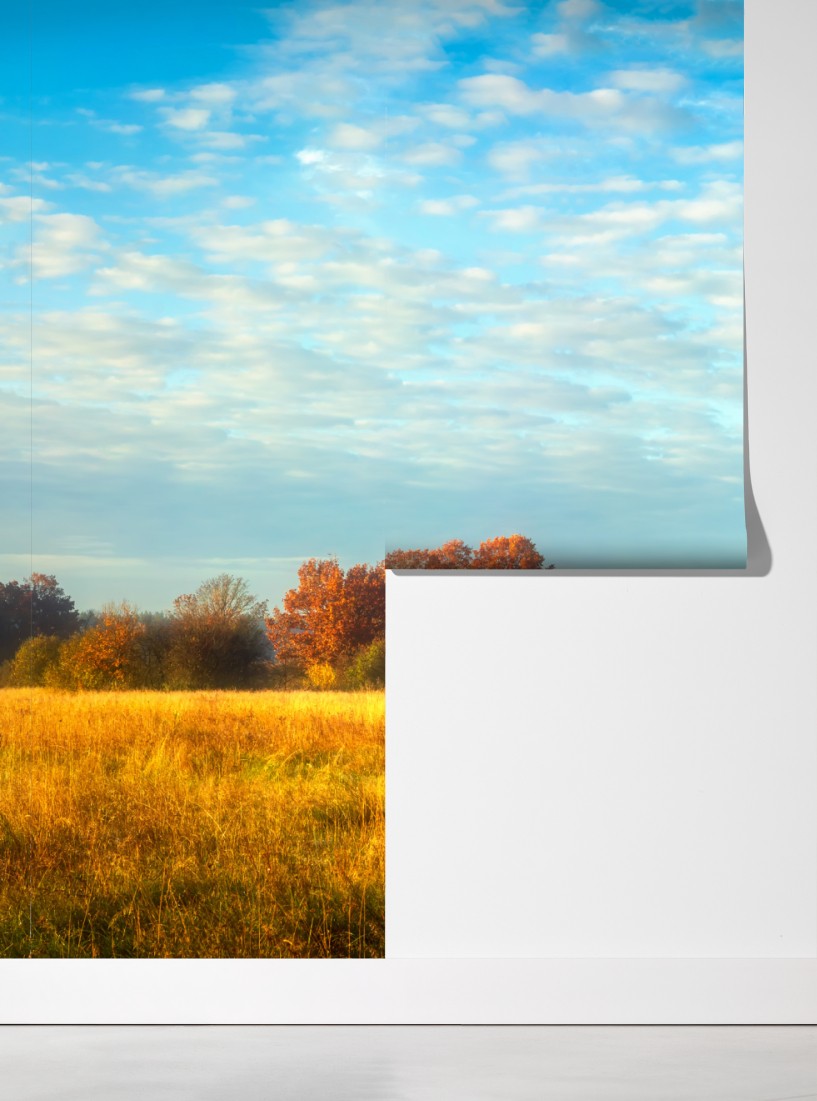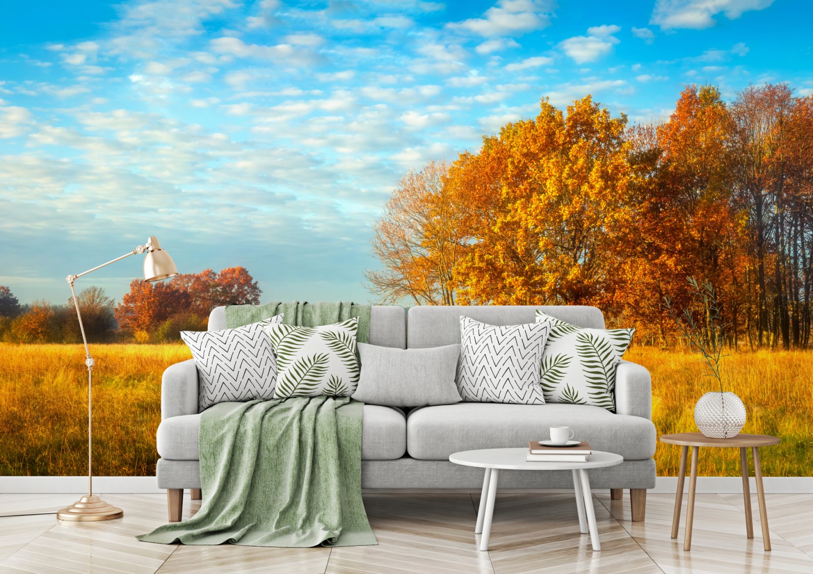 Warme Herbstfarben erhellen eine ruhige Wiese und bringen natürliche Gemütlichkeit in jeden Raum.