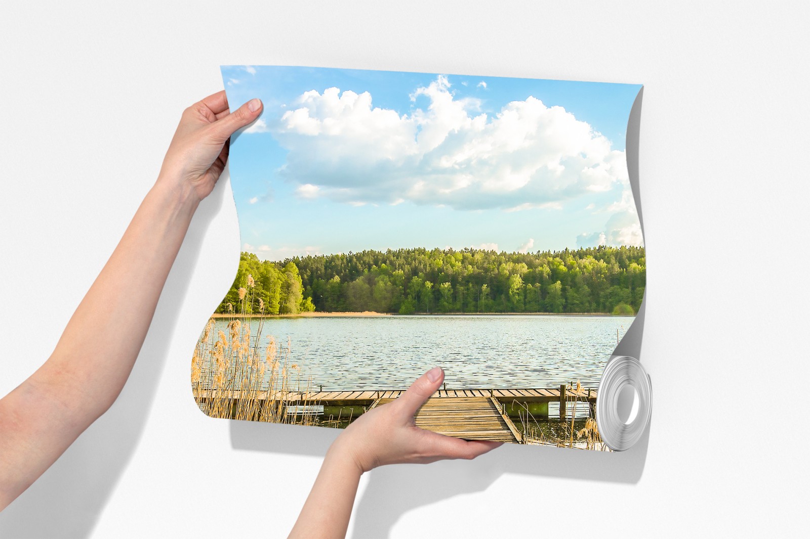Fototapete hölzerner steg zum ruhigen see