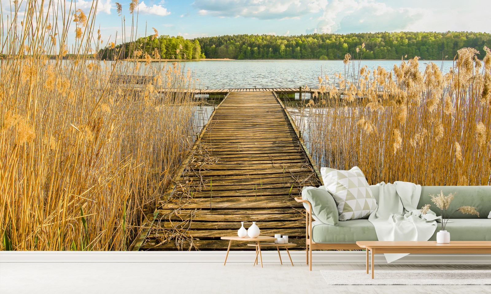 Fototapete Hölzerner steg zum ruhigen see