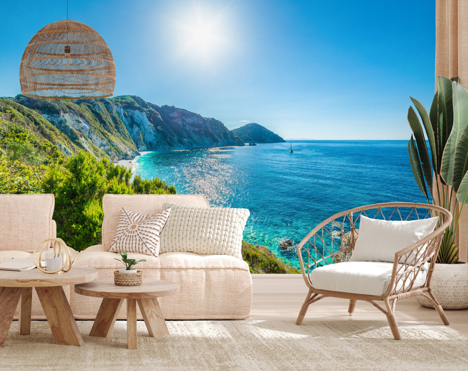 Fototapete sonnige panoramaansicht des strands Sansone, Elba
