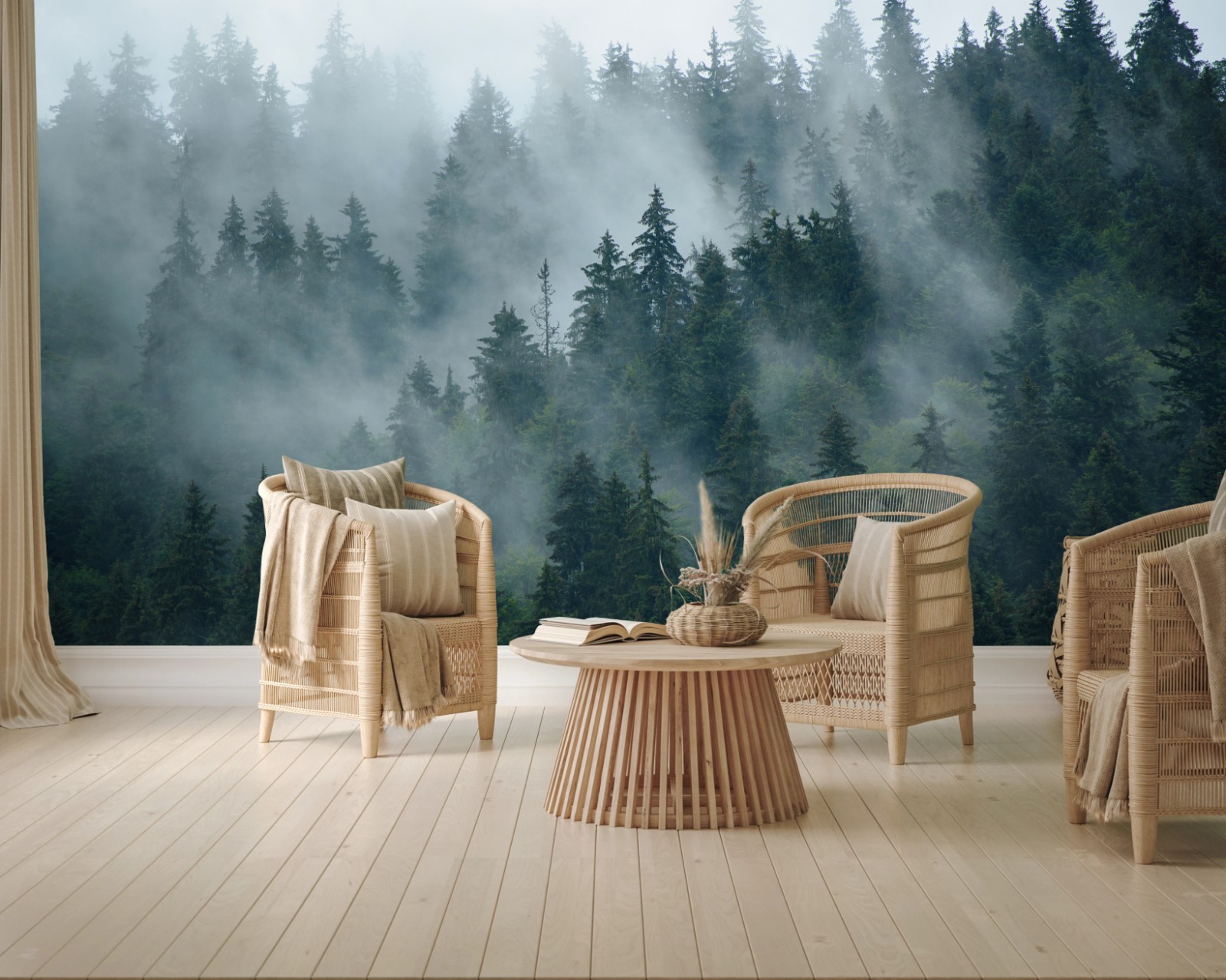 Fototapete Nebeliger immergrüner wald