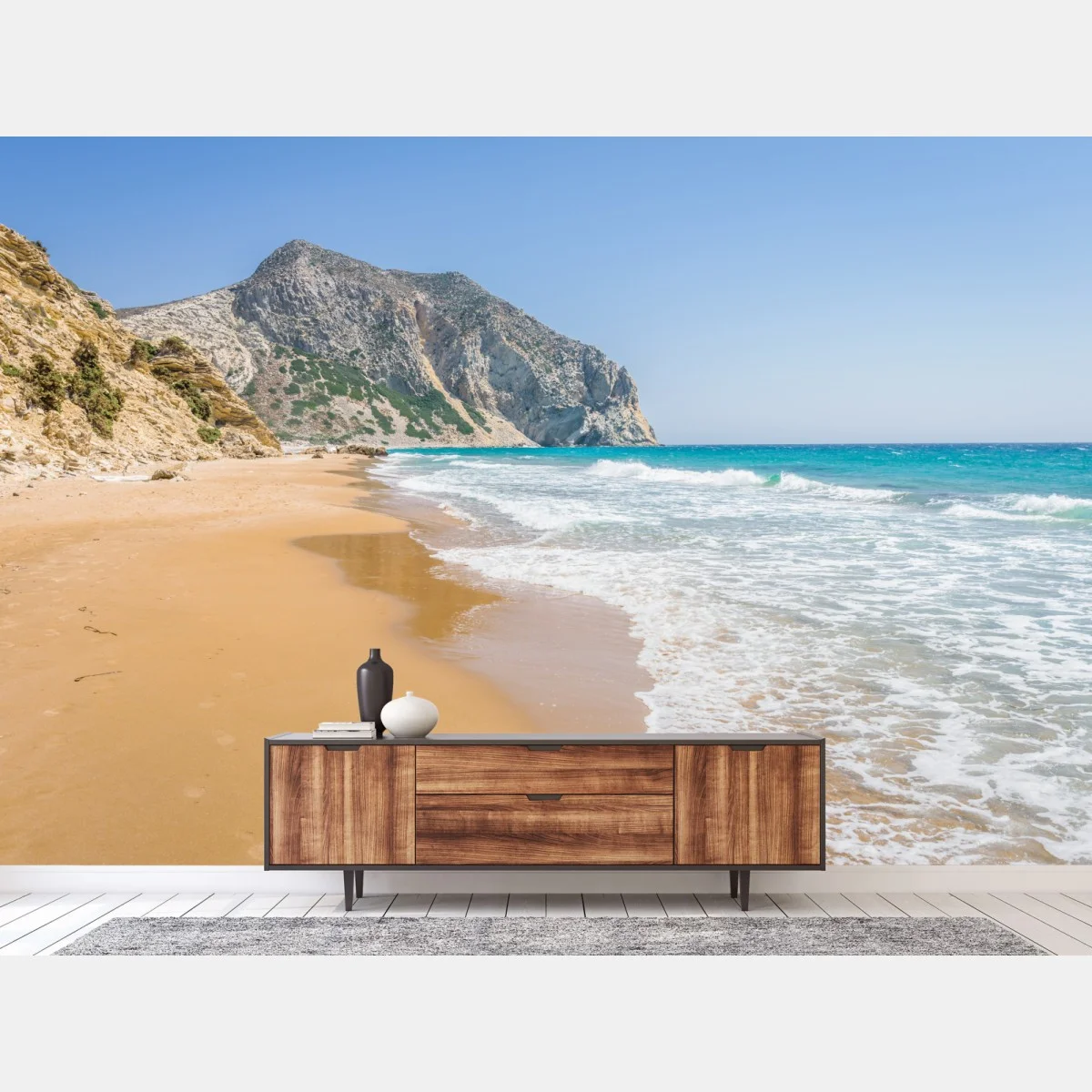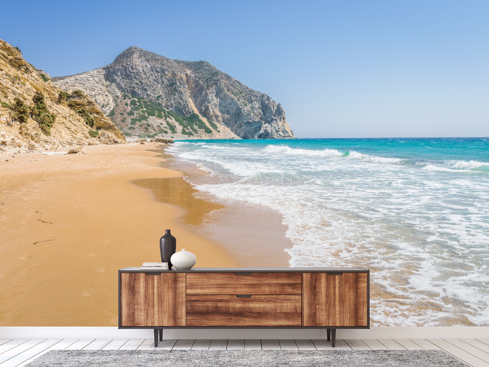 Fototapete Sonniger türkisfarbener strand mit klippen