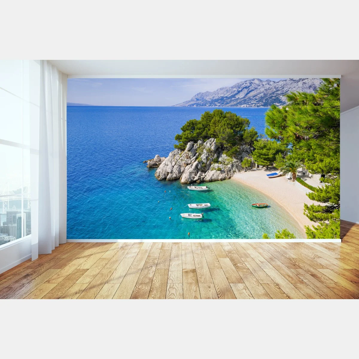 Fototapete Ruhige türkisfarbene bucht mit booten