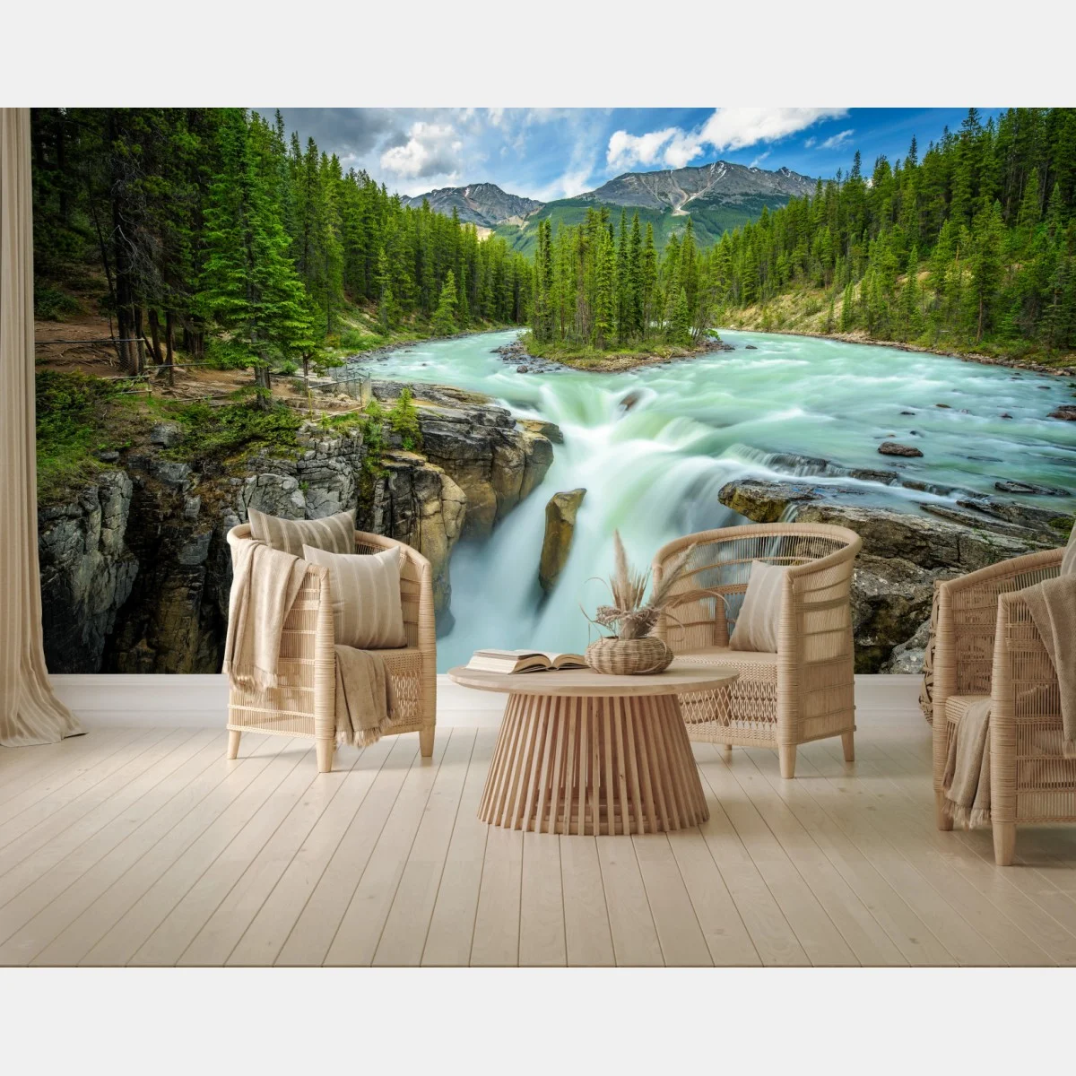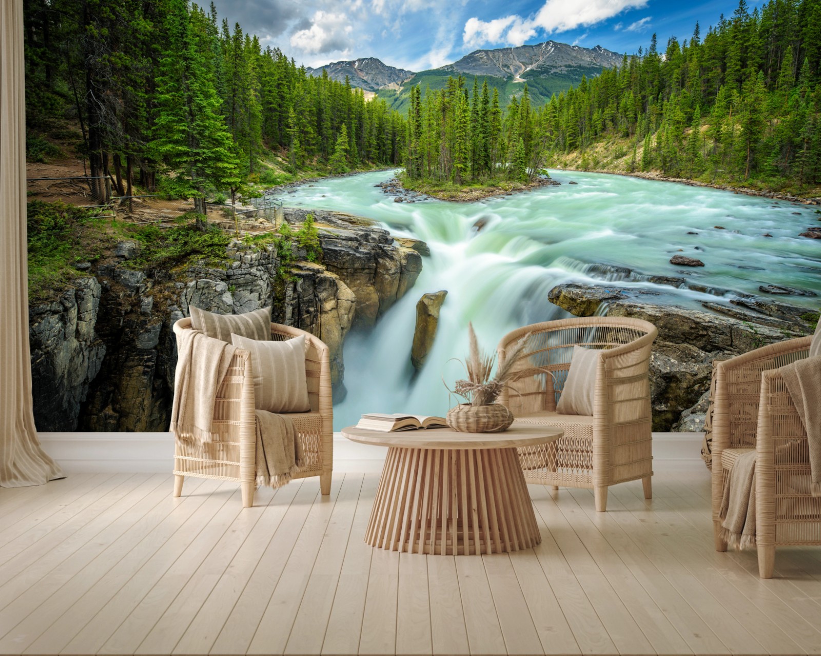 Fototapete Neblige flussklamm bei Upper Sunwapta Falls, Jasper National Park