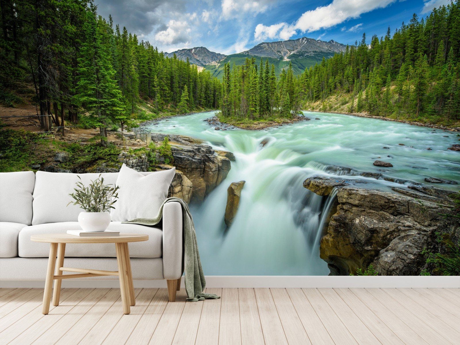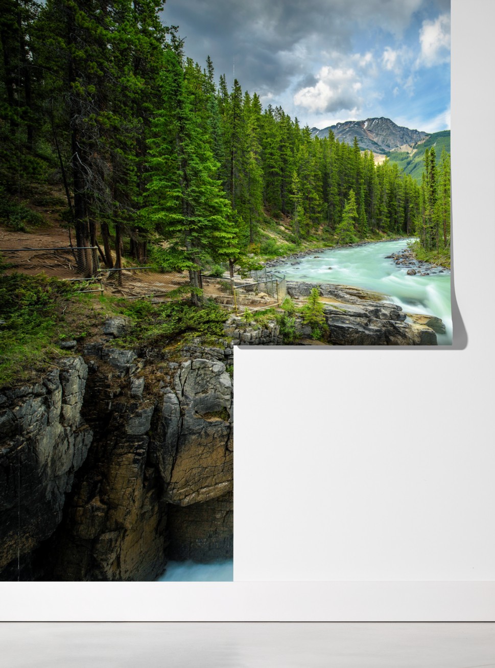 Fototapete neblige flussklamm bei Upper Sunwapta Falls, Jasper National Park