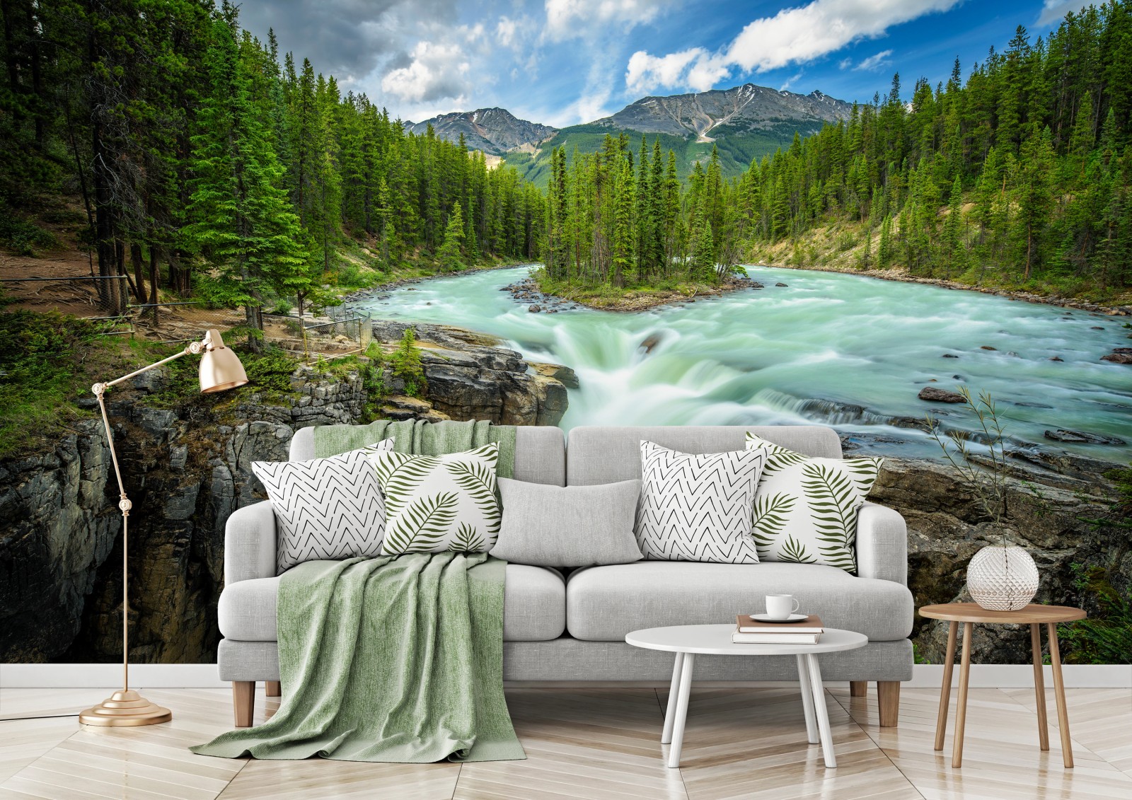 Fototapete Neblige flussklamm bei Upper Sunwapta Falls, Jasper National Park