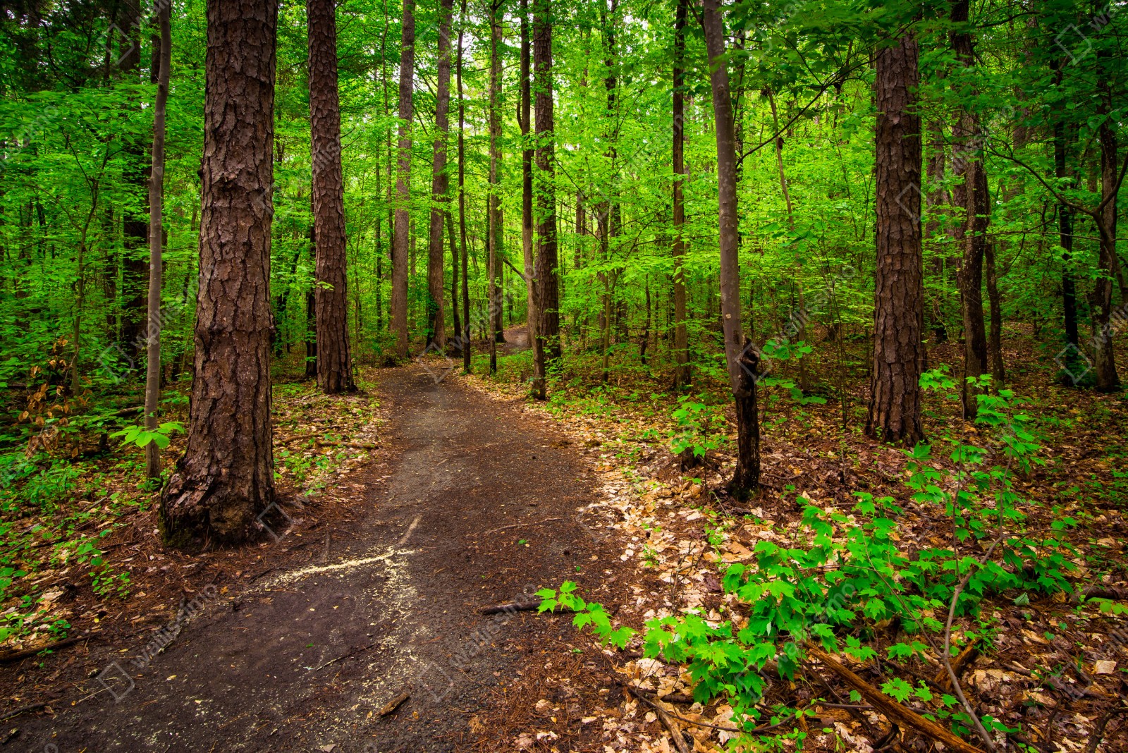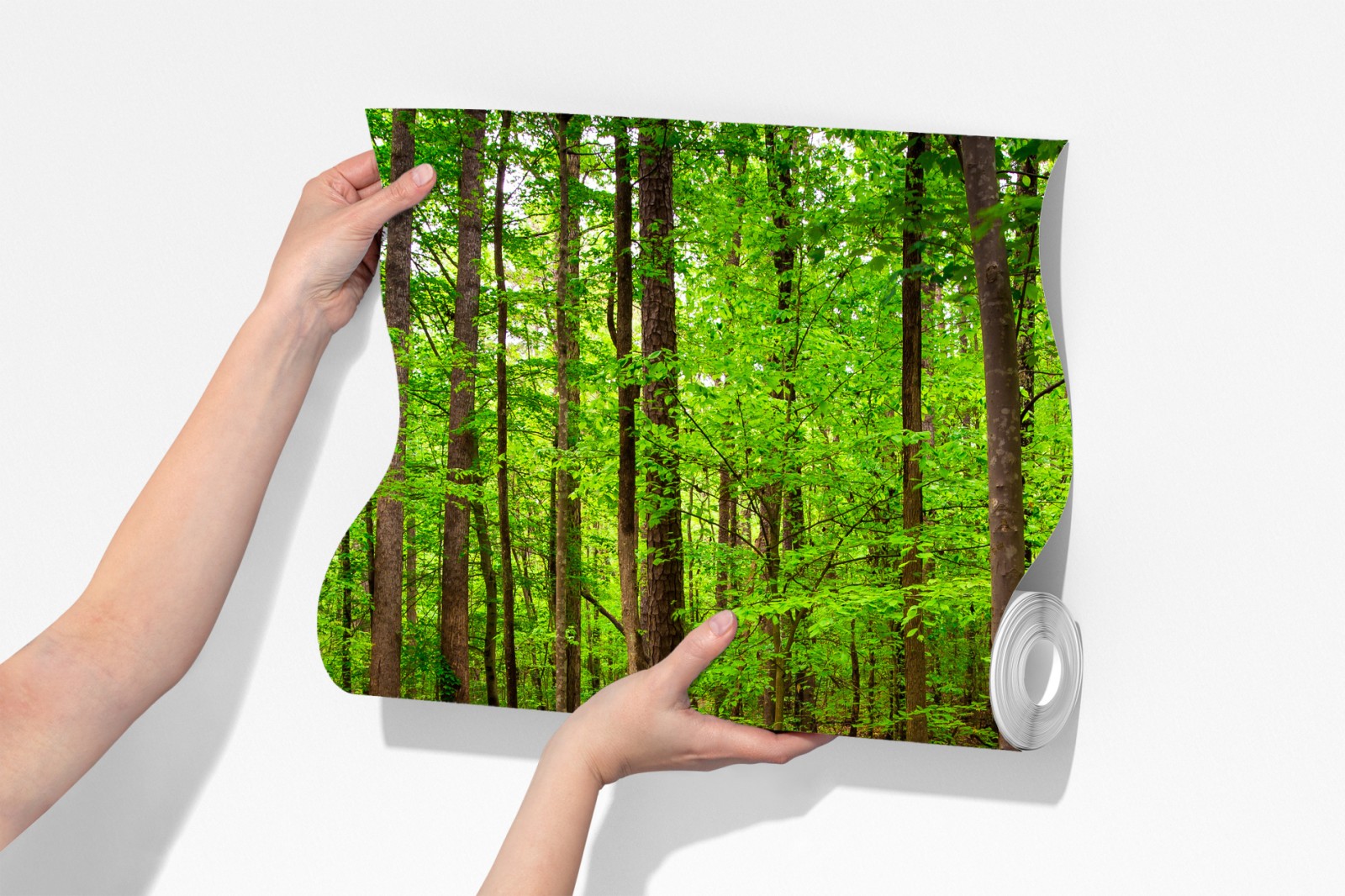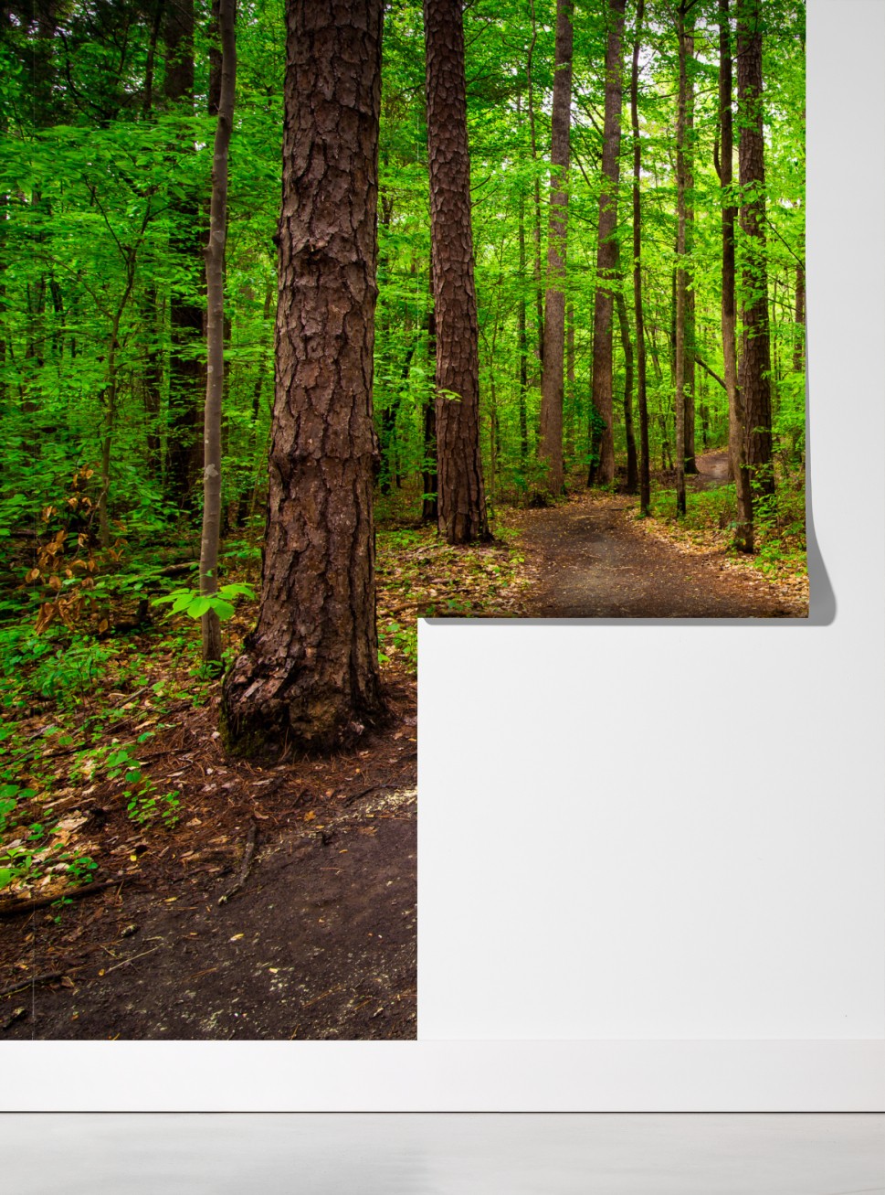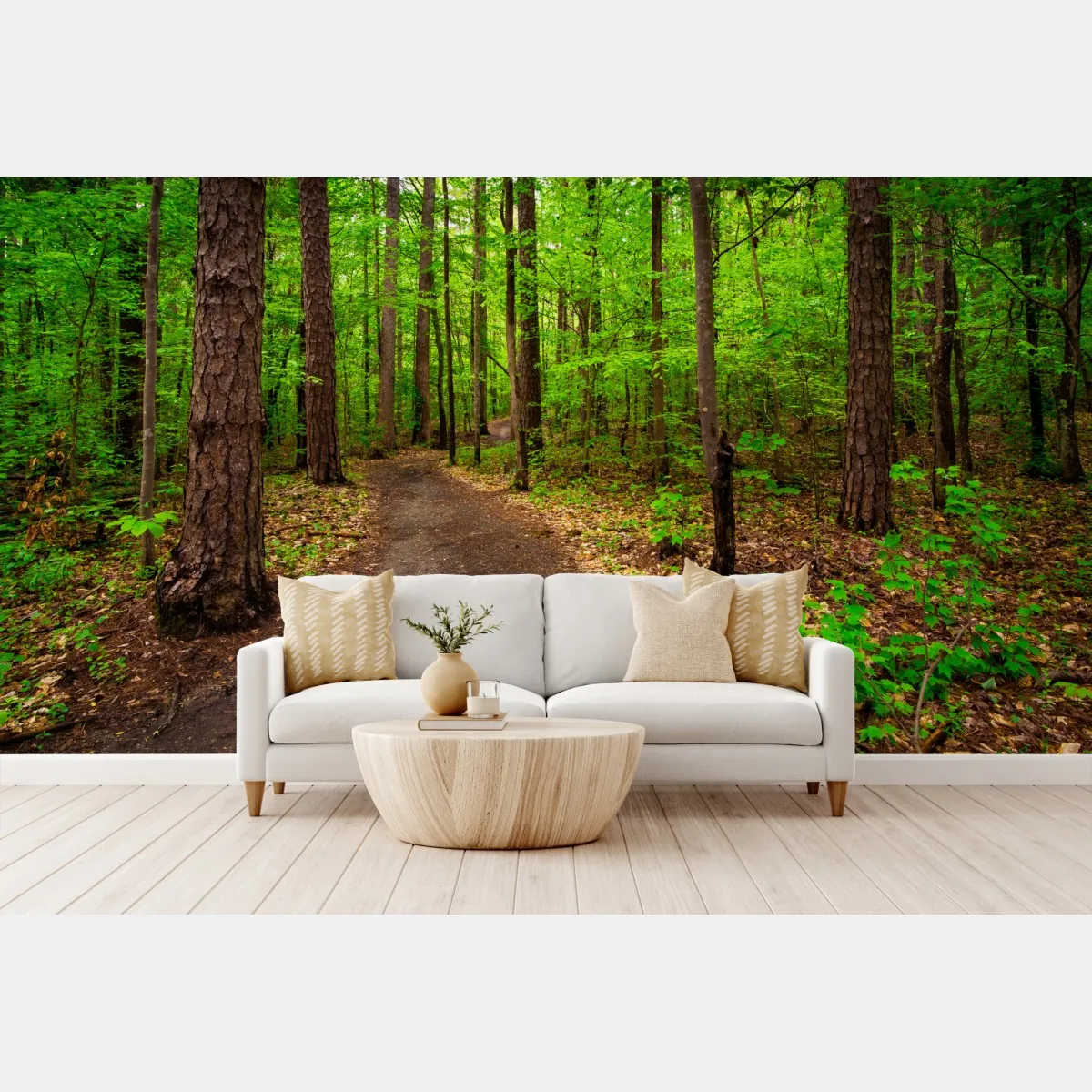 Lebendige grüne Farbtöne und ein ruhiger Waldweg bringen natürliche Ruhe und Frische in jeden Raum.