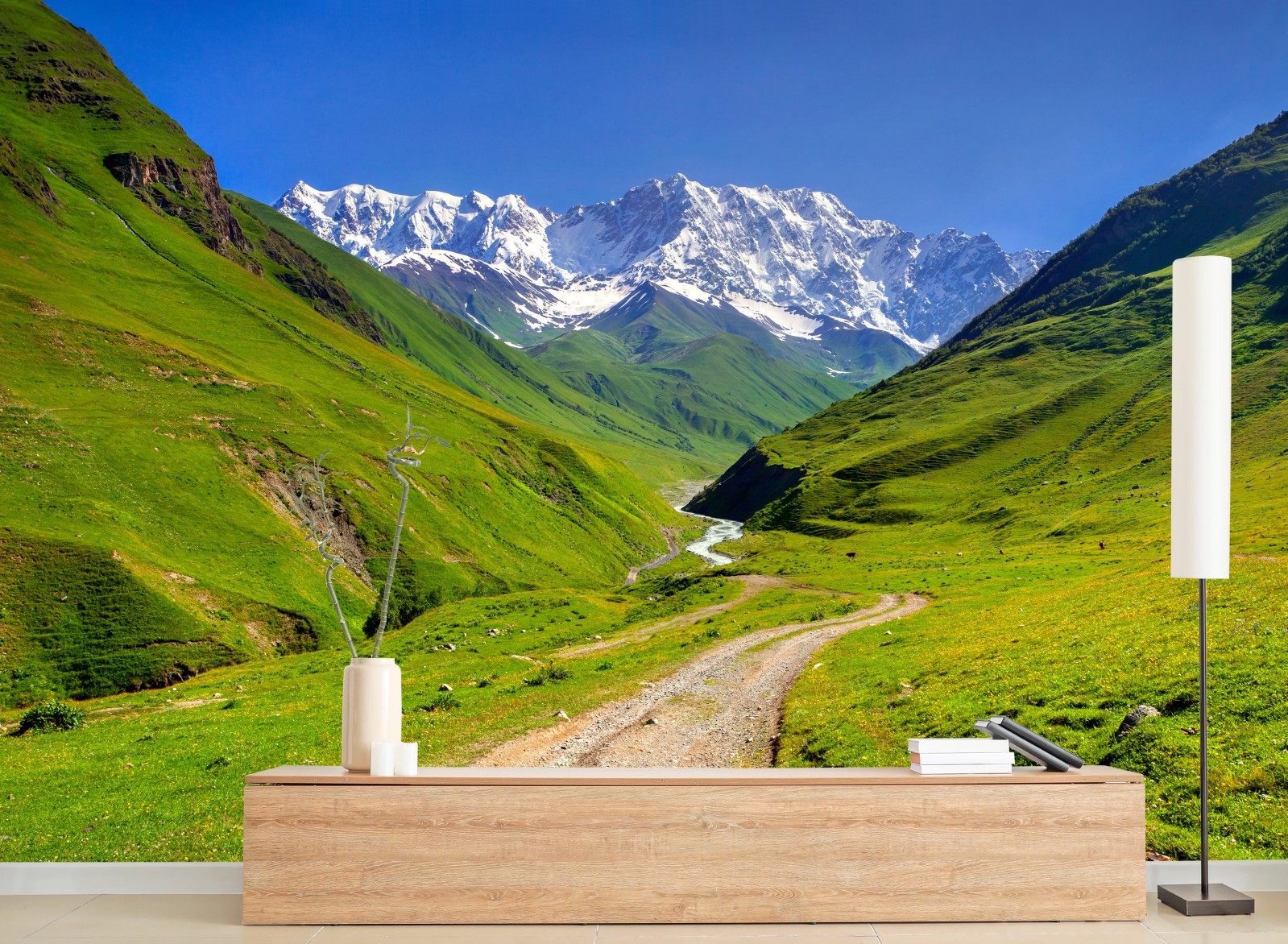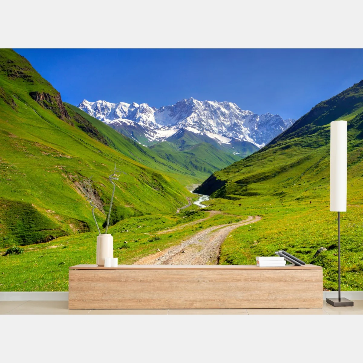 Atemberaubendes Panorama der Shkhara und der grünen Täler von Svaneti, ideal um alpine Ruhe und lebendige Farben in jeden Raum zu bringen.MehrWeniger