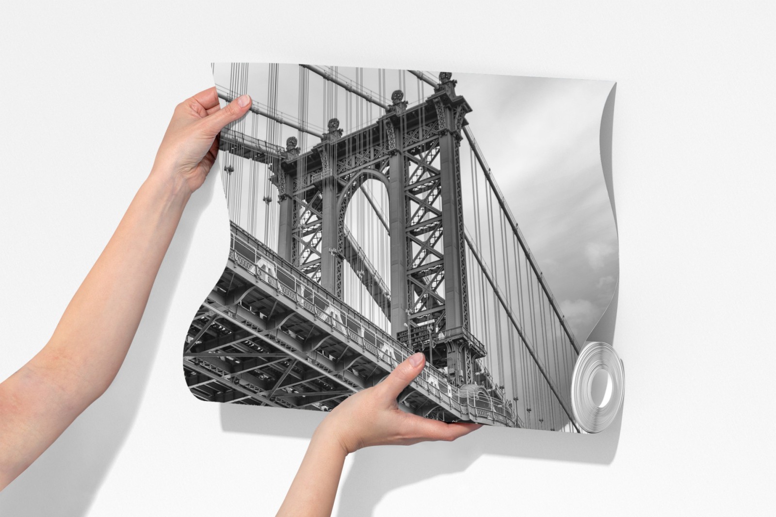 Dramatisches schwarzweißbild der Manhattan Bridge bringt industriellen, urbanen Charakter und Tiefe in jeden Raum.