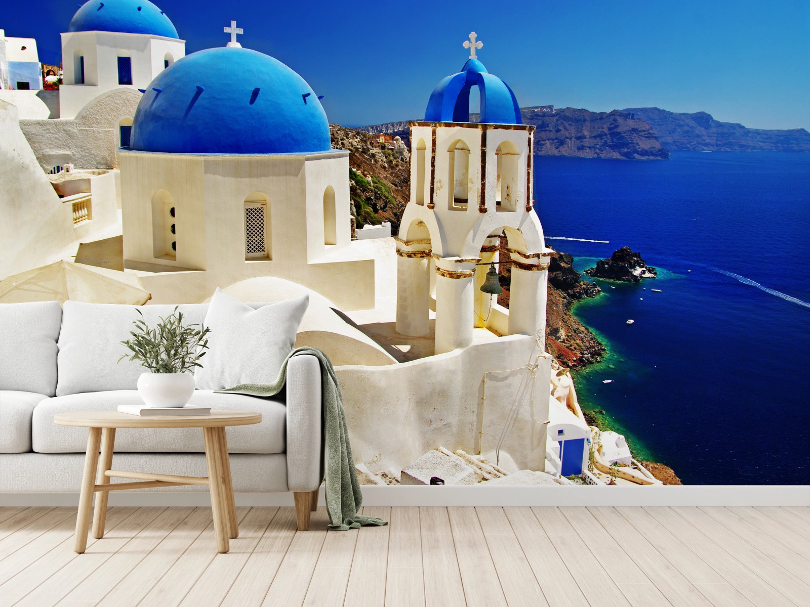 Fototapete Santorini blaue kuppeln meerblick