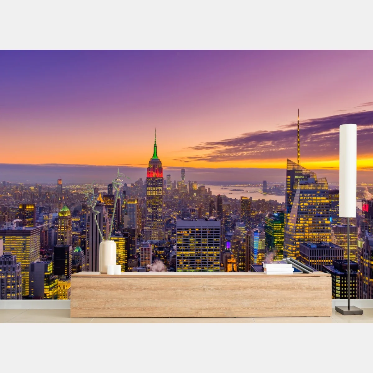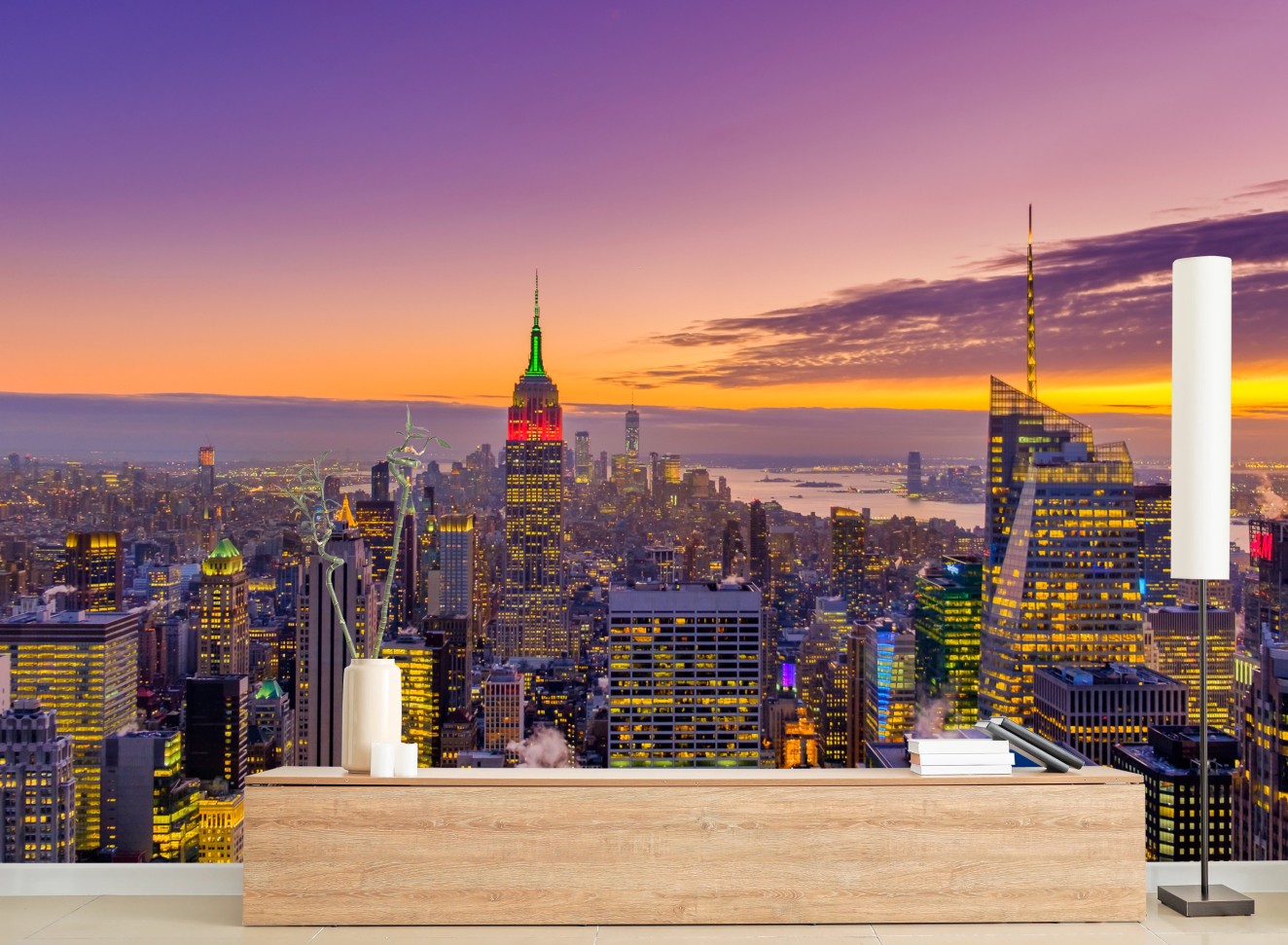 Fototapete Lebendige New York skyline bei sonnenuntergang